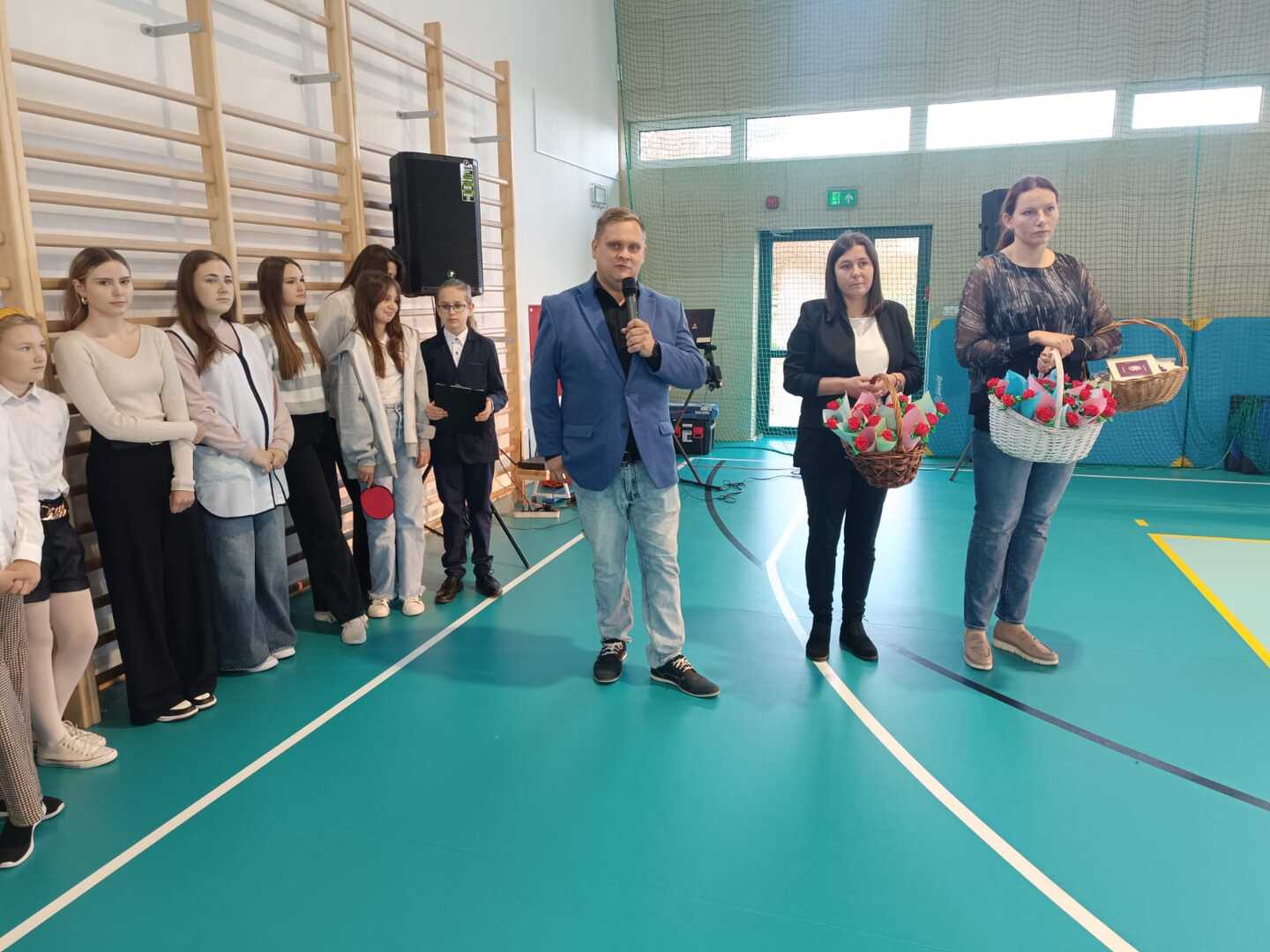 Część artystyczna została zwieńczona przemówieniem przewodniczącego SU (samorządu uczniowskiego), który podziękował wszystkim pracownikom szkoły za trud wkładany w opiekę nad uczniami oraz kształcenie młodego pokolenia. Następnie głos zabrali przedstawiciele RR (rady rodziców) - życzyli oni nauczycielom wytrwałości w pracy z dziećmi i młodzieżą oraz cierpliwości do rodziców ;-)