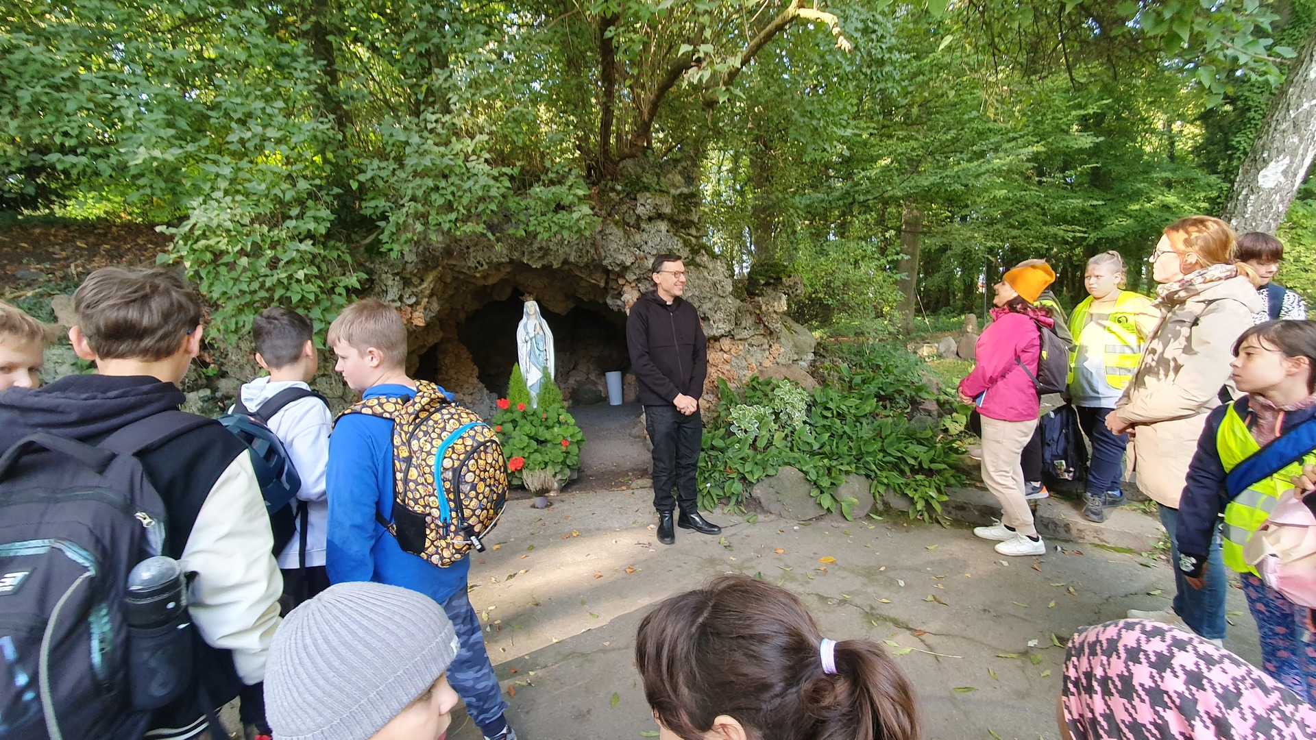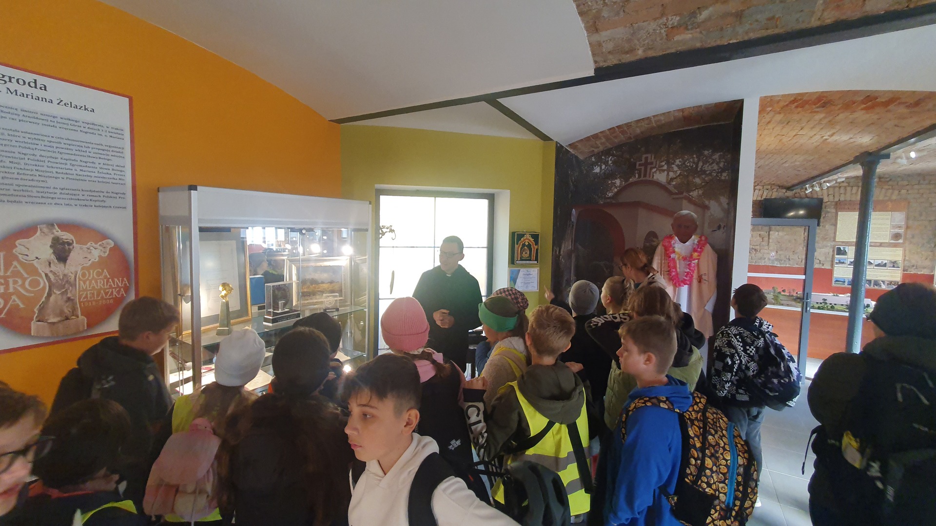 Gdy dołączyła do nas pani dyrektor, ksiądz Michał Śledziński (nowy probosz maniewskiej parafii) oprowadził nas po Muzeum im. Ojca Mariana Żelazka, domu misyjnym oraz parku.