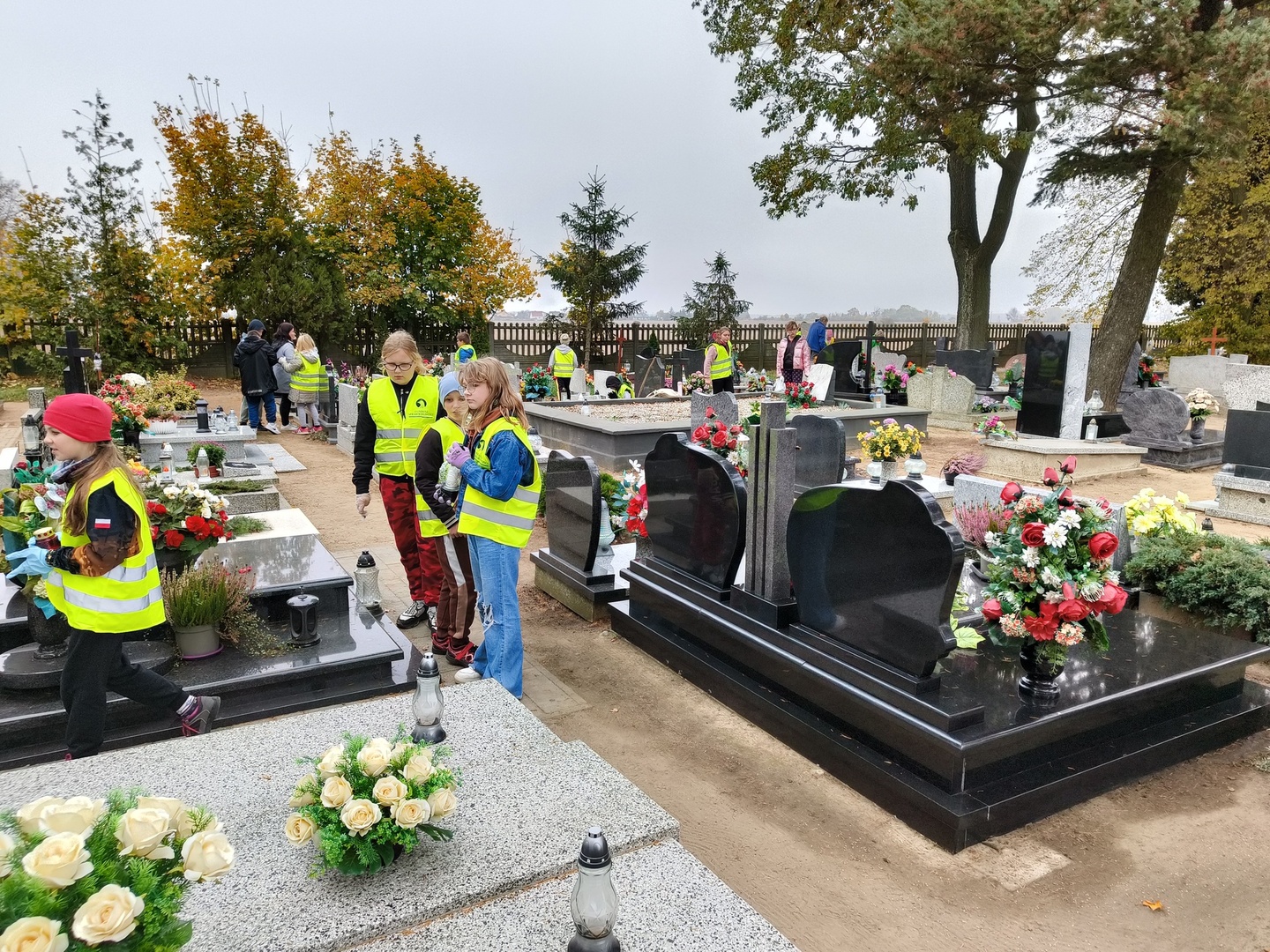 Przełom października i listopada to czas pełen refleksji i wspomnień. W tym okresie myślimy o tych, którzy odeszli. Dziś (28.10.2024 r.) po raz szósty jako społeczność szkolna wzięliśmy udział w akcji MEiN „Szkoła Pamięta”. Podczas wizyty na miejscowym cmentarzu grabiliśmy alejki, sprzątaliśmy zapomniane groby i zapalaliśmy znicze. Spacer wśród opadających liści i wspólne pochylenie się nad grobami Powstańców Wielkopolskich to piękna tradycja, którą warto podtrzymywać.