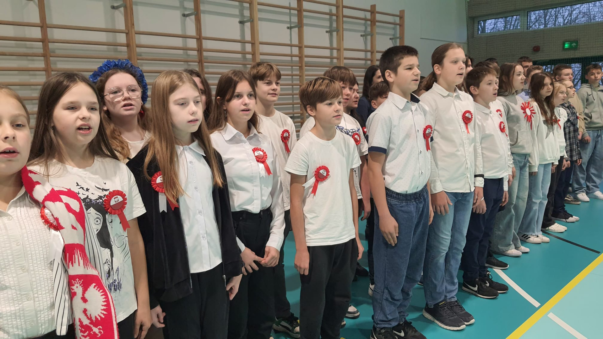 Wspólne odśpiewanie hymnu państwowego z okazji Narodowego Święta Niepodległości to tradycja, która na stałe weszła do kalendarza uroczystości szkolnych.