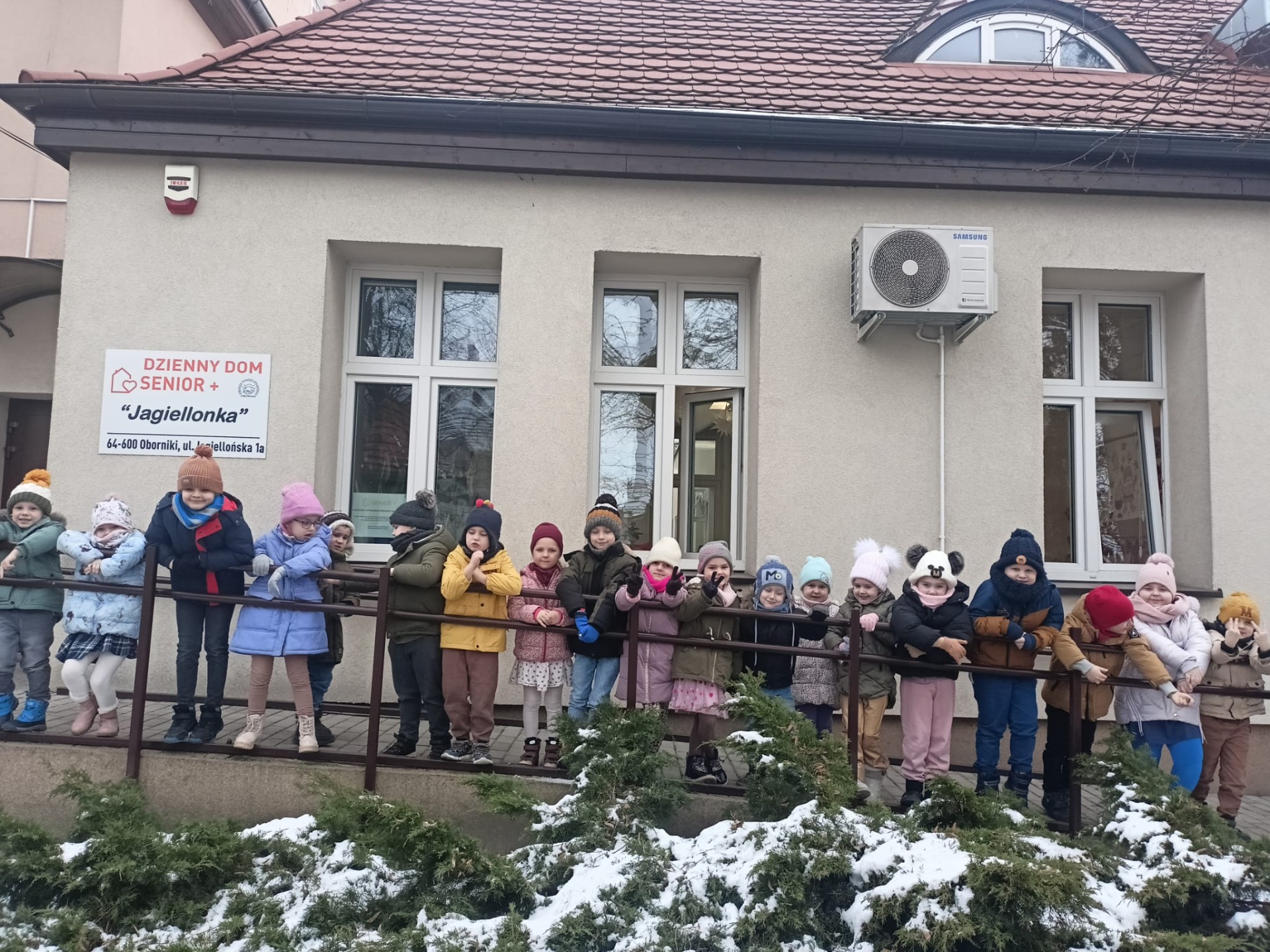 To był dzień pełen wzruszeń. 18 lutego nasze pięcio- i sześciolatki wraz z opiekunkami wybrały się do Obornik, by zaśpiewać dla Babć i Dziadków - tych przyszywanych... ale uśmiechem i mądrością dorównujących naszym własnym! Po występie dzieci złożyły seniorom życzenia i wręczyły upominki zebrane w ramach zbiórki prowadzonej w przedszkolu.