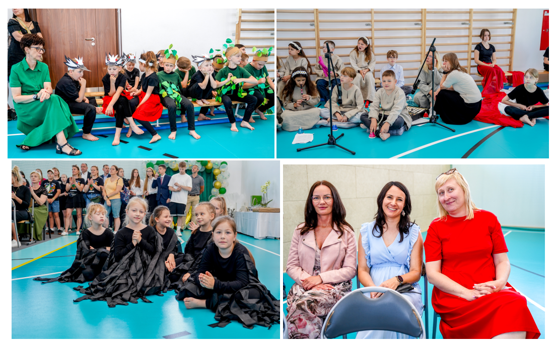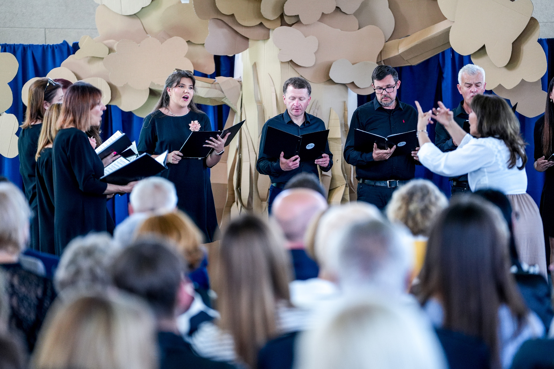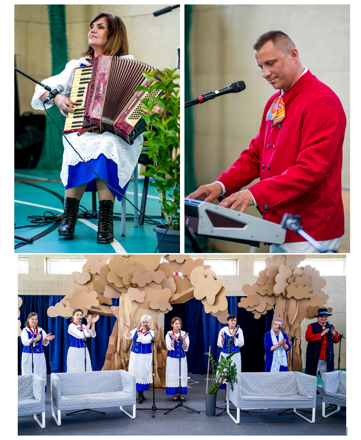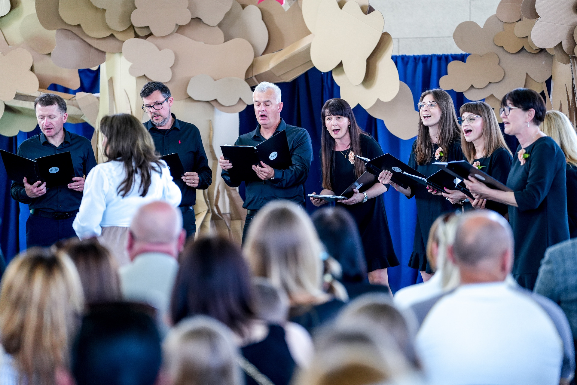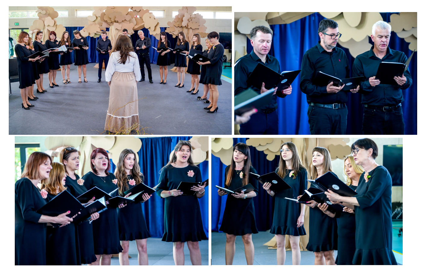 W programie nie zabrakło naszego szkolnego hymnu w różnych aranżacjach, pokazów artystycznych oraz wyjątkowych występów. Na scenie pojawili się również nasi absolwenci, byli nauczyciele oraz zaprzyjaźnione zespoły: Babki Ali, którego kierownikiem artystycznym jest Alina Forysiak, nasza emerytowana muzyczka, chór Pro Musica pod dyrekcją naszej Pani dyrektor Renaty Wrzeszcz i Zespół Ludowy Maniewiacy, który prowadzi nasz absolwent Piotr Izychart.