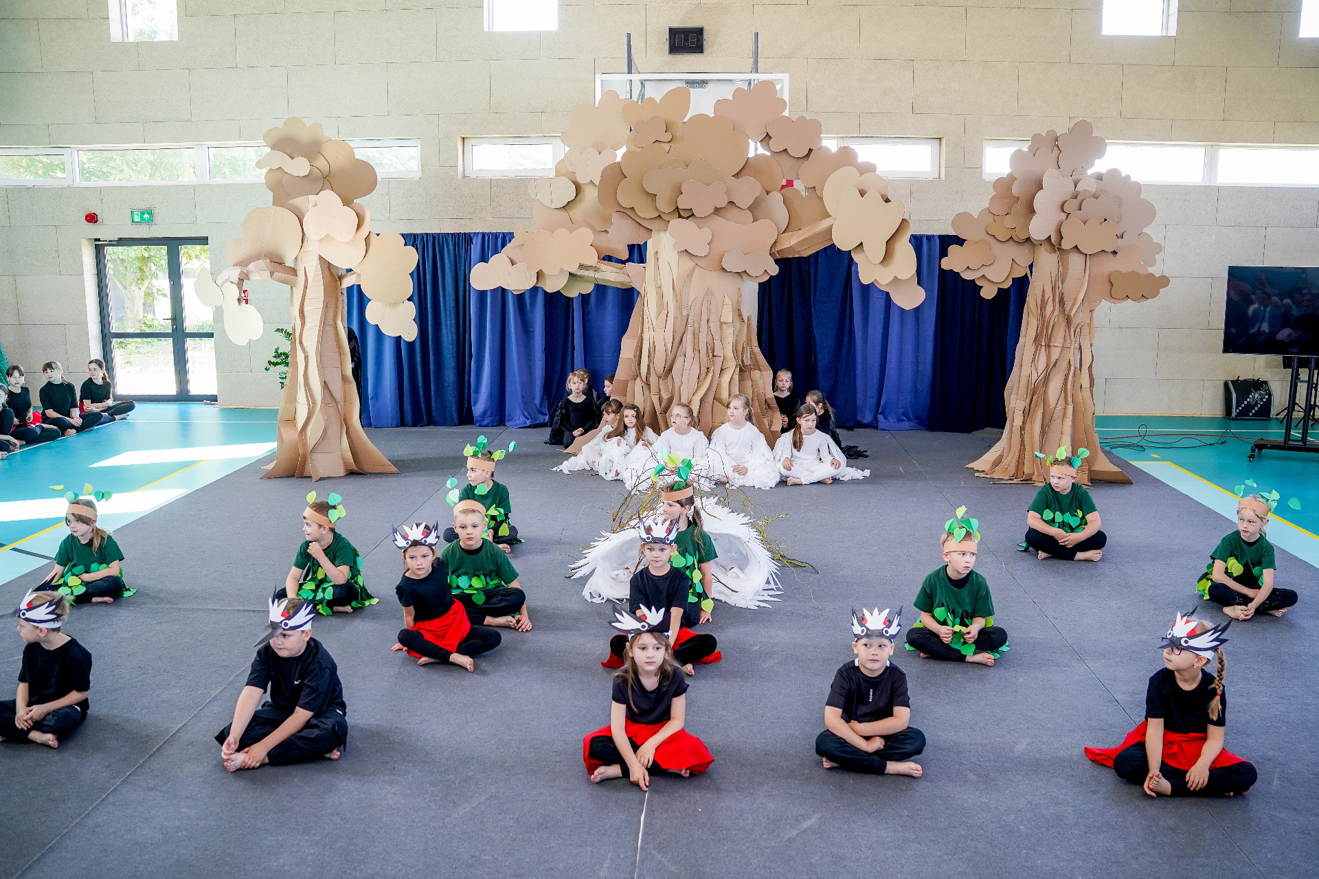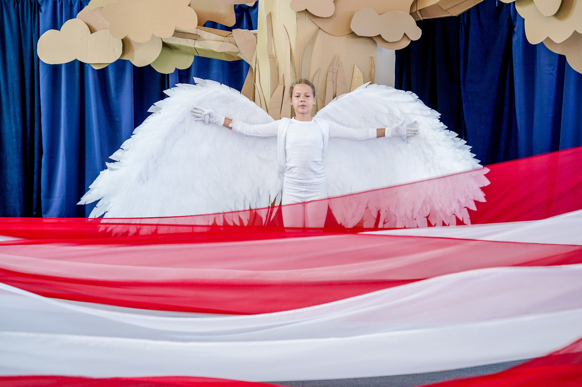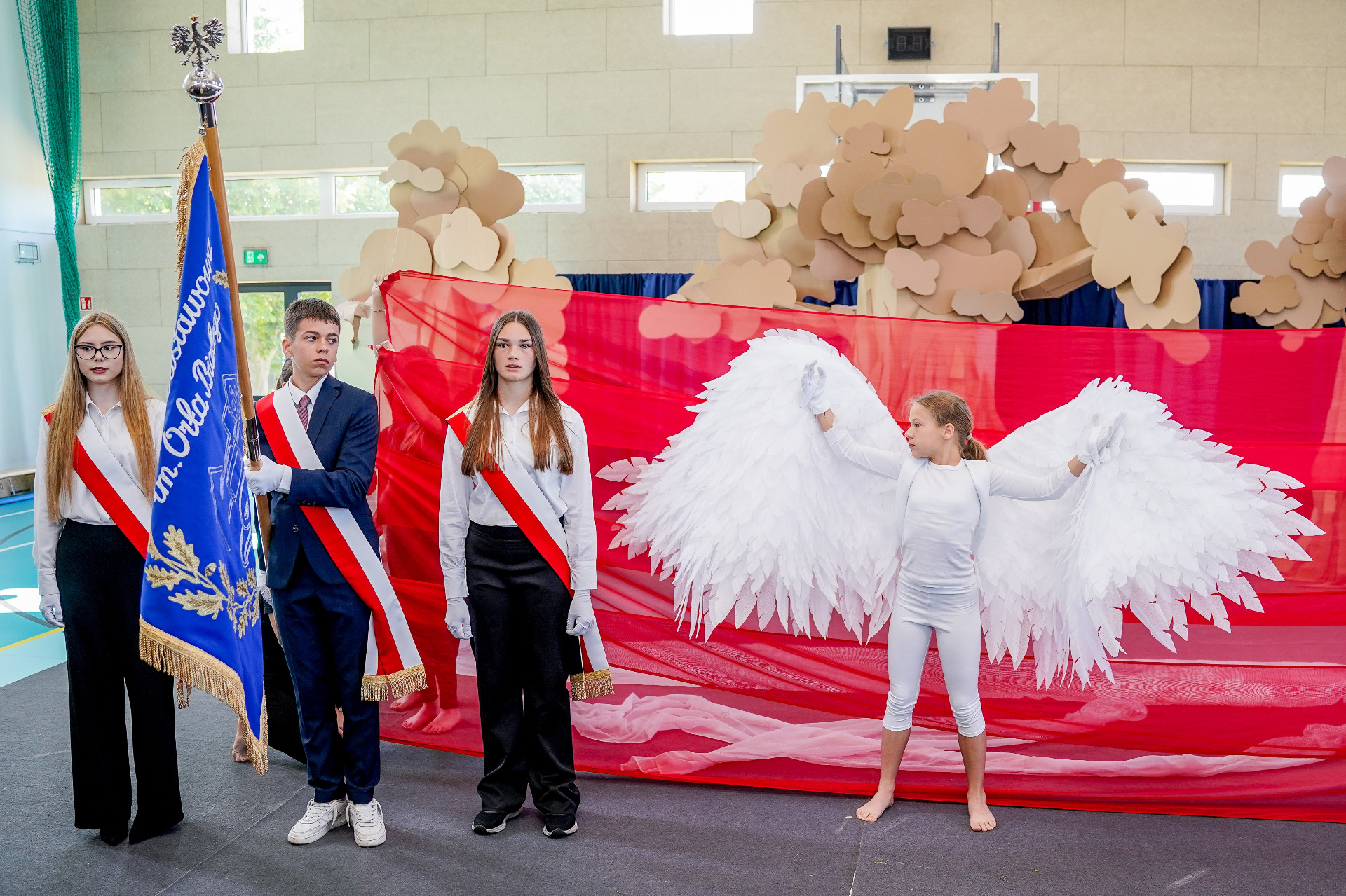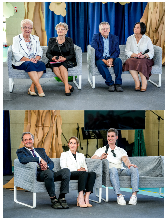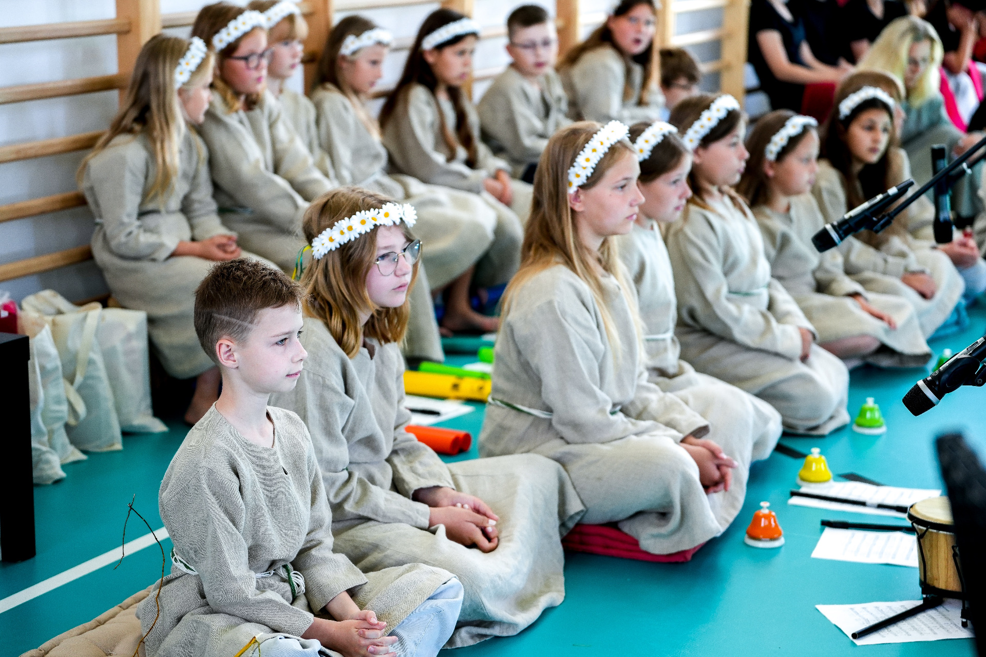 W programie nie zabrakło naszego szkolnego hymnu w różnych aranżacjach, pokazów artystycznych oraz wyjątkowych występów. Na scenie pojawili się również nasi absolwenci, byli nauczyciele oraz zaprzyjaźnione zespoły: Babki Ali, którego kierownikiem artystycznym jest Alina Forysiak, nasza emerytowana muzyczka, chór Pro Musica pod dyrekcją naszej Pani dyrektor Renaty Wrzeszcz i Zespół Ludowy Maniewiacy, który prowadzi nasz absolwent Piotr Izychart.