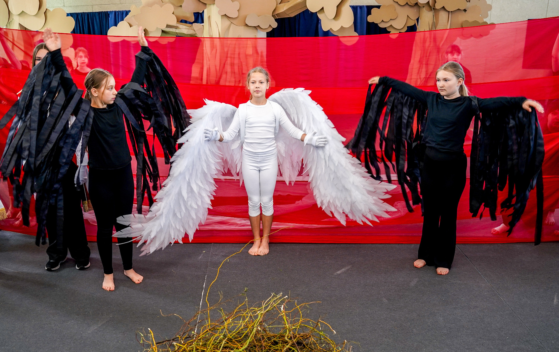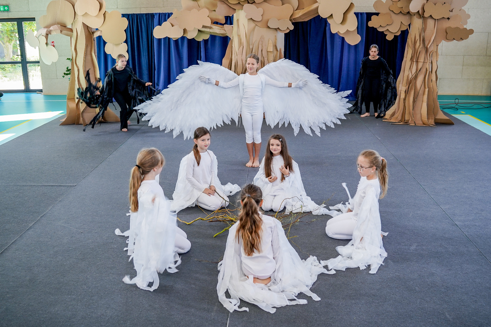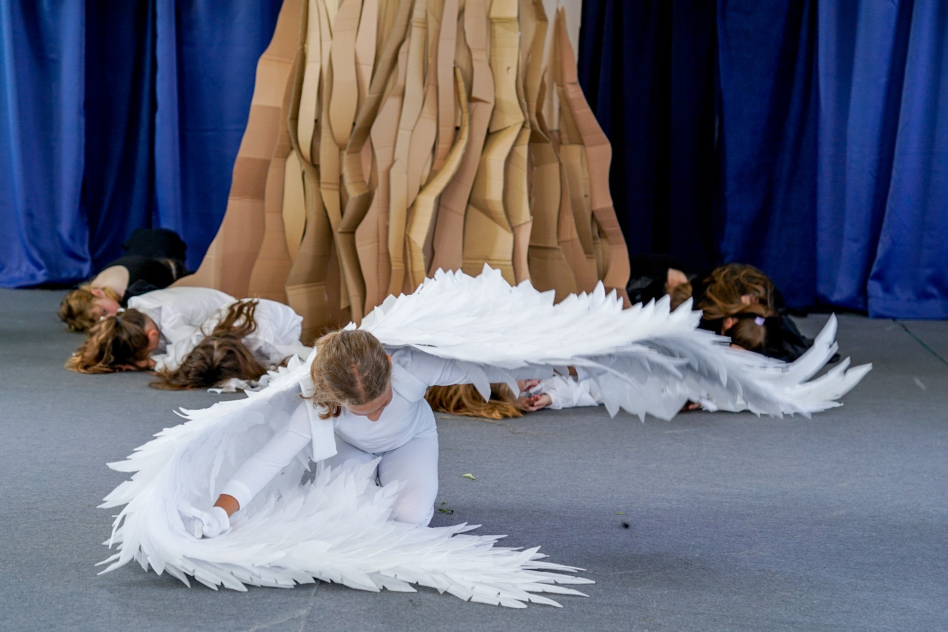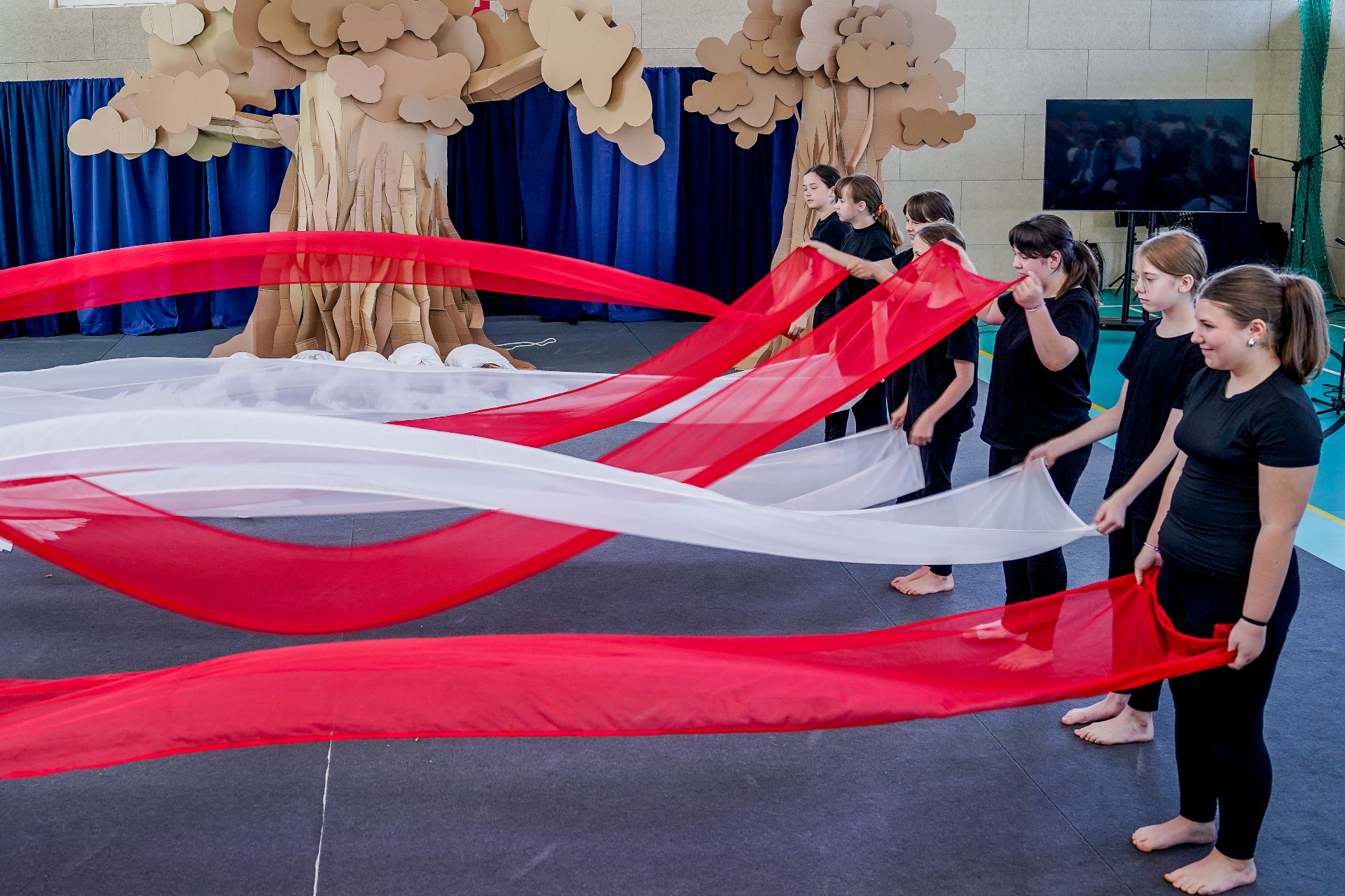 W programie nie zabrakło naszego szkolnego hymnu w różnych aranżacjach, pokazów artystycznych oraz wyjątkowych występów. Na scenie pojawili się również nasi absolwenci, byli nauczyciele oraz zaprzyjaźnione zespoły: Babki Ali, którego kierownikiem artystycznym jest Alina Forysiak, nasza emerytowana muzyczka, chór Pro Musica pod dyrekcją naszej Pani dyrektor Renaty Wrzeszcz i Zespół Ludowy Maniewiacy, który prowadzi nasz absolwent Piotr Izychart.