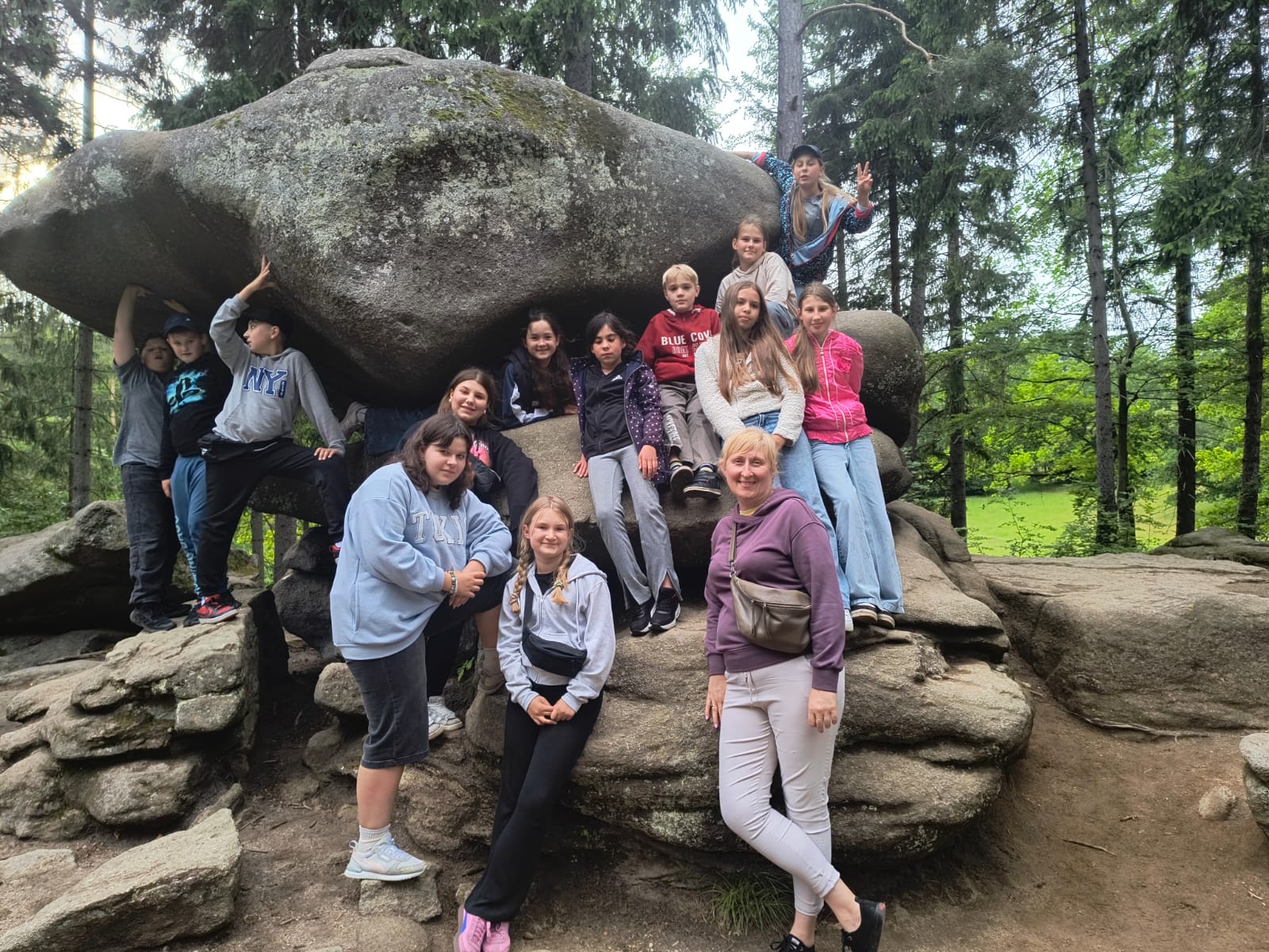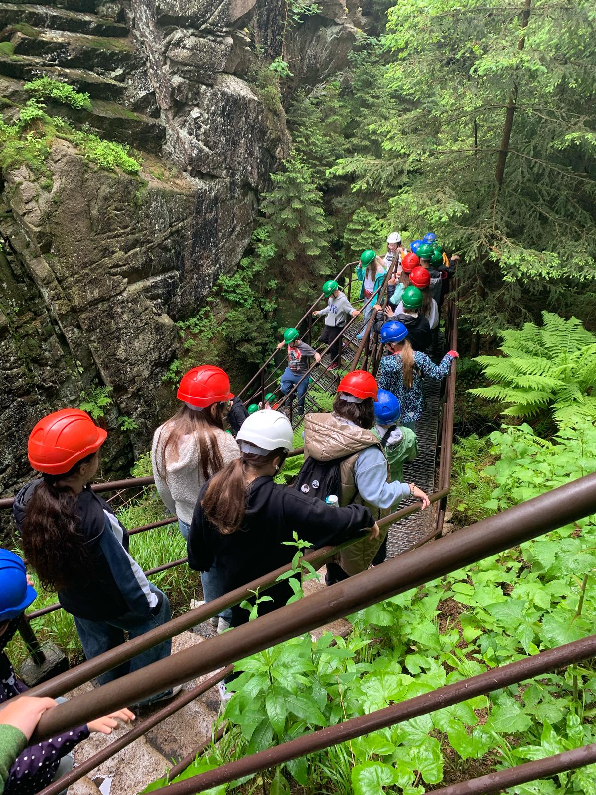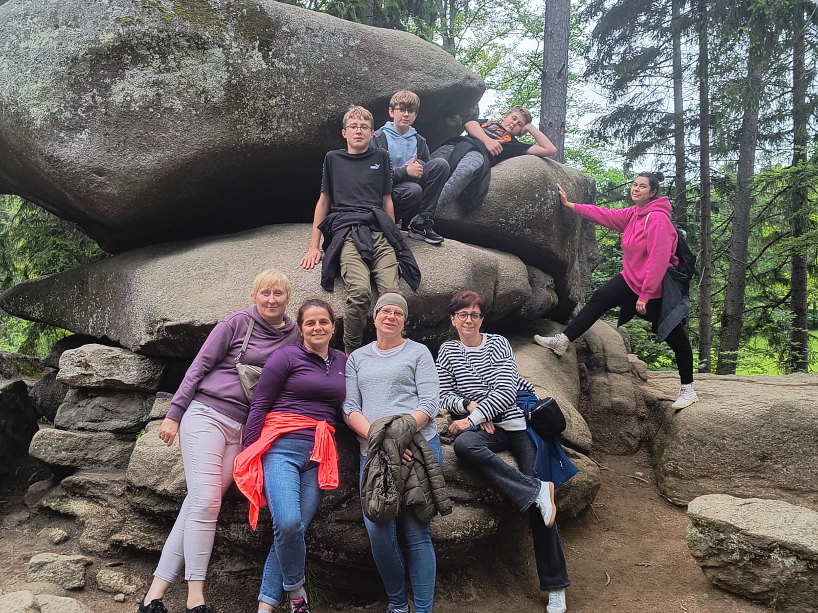 Nasza karkonoska przygoda rozpoczęła się od spotkania z ogniem i szkłem – w hucie szkła kryształowego „Julia” w Piechowicach, gdzie poznaliśmy magię tworzenia kryształowych arcydzieł. Następnie natura przejęła stery – zachwycił nas majestatyczny Wodospad Kamieńczyka, gdzie szum wody i chłód skał dodały nam energii. Wieczorem, już w bardziej romantycznym nastroju, wybraliśmy się na spacer na Wzgórze Chybotek – skałę, która zaskakuje swoją niestabilną równowagą i niepowtarzalnym klimatem.