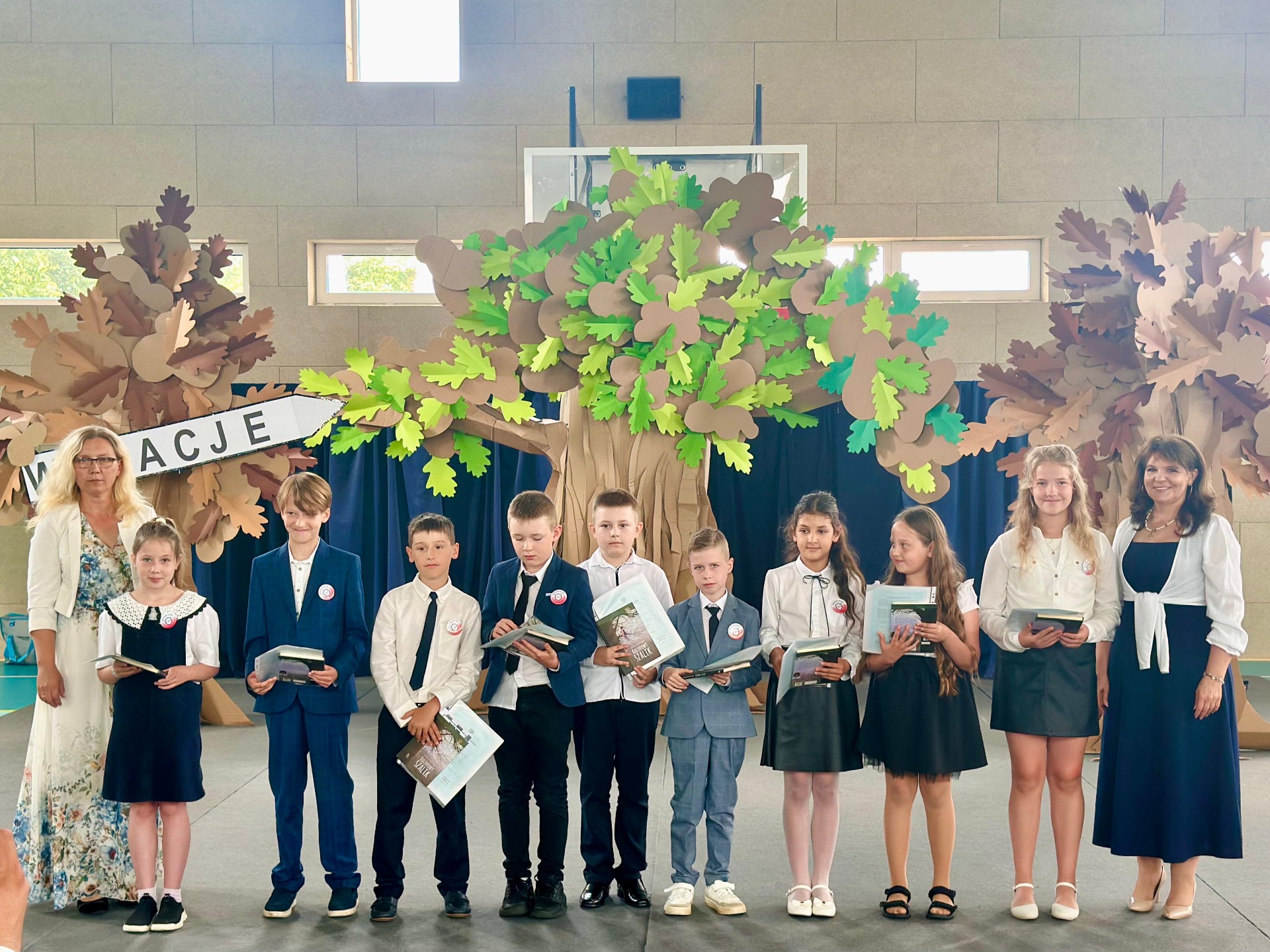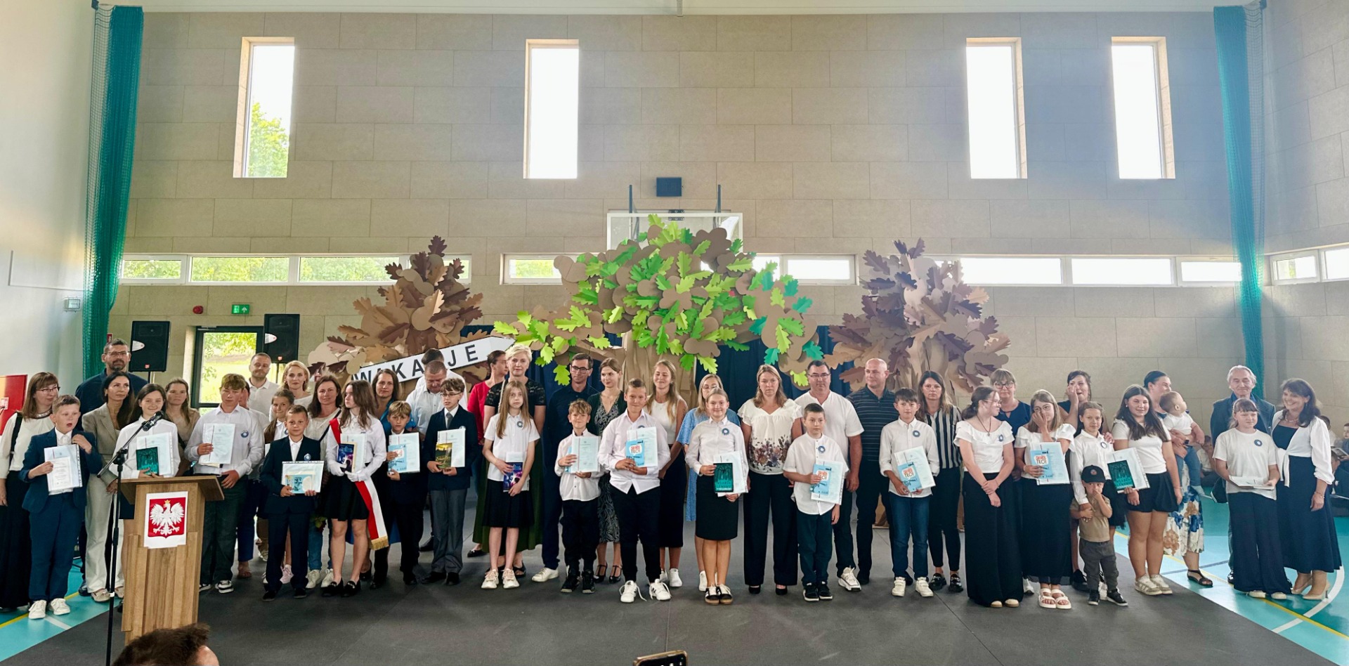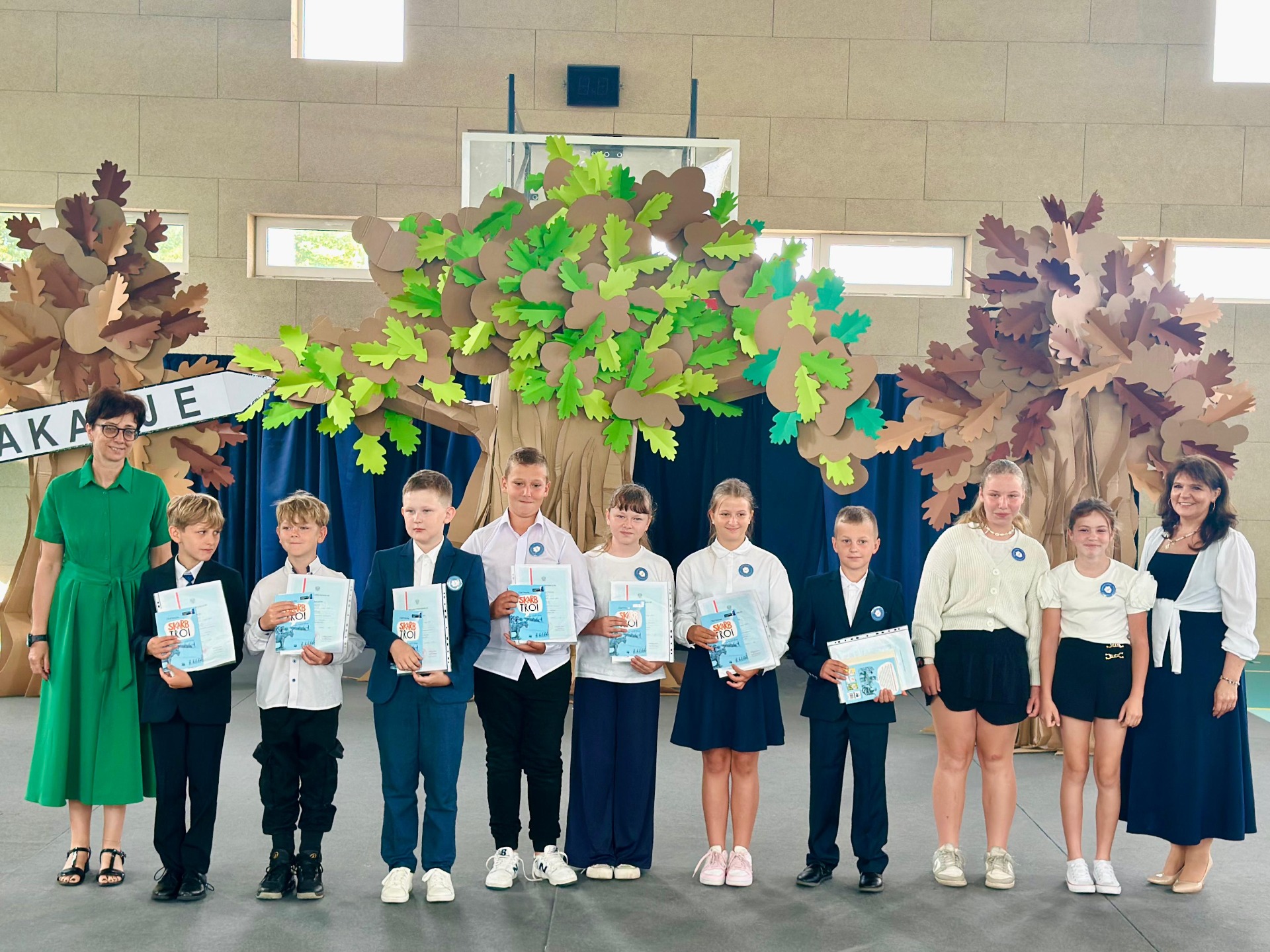 W piątek, podczas uroczystości zakończenia roku szkolnego, uczniowie klas 1–7 zgromadzili się w sali gimnastycznej, aby wspólnie podsumować miniony rok nauki. W obecności nauczycieli, rodziców i zaproszonych gości, pani dyrektor wręczyła nagrody książkowe uczniom, którzy osiągnęli najwyższe wyniki w nauce i otrzymali świadectwa z czerwonym paskiem. Rodzice tych uczniów otrzymali listy gratulacyjne jako wyraz uznania za wspieranie dzieci w ich edukacyjnych sukcesach.