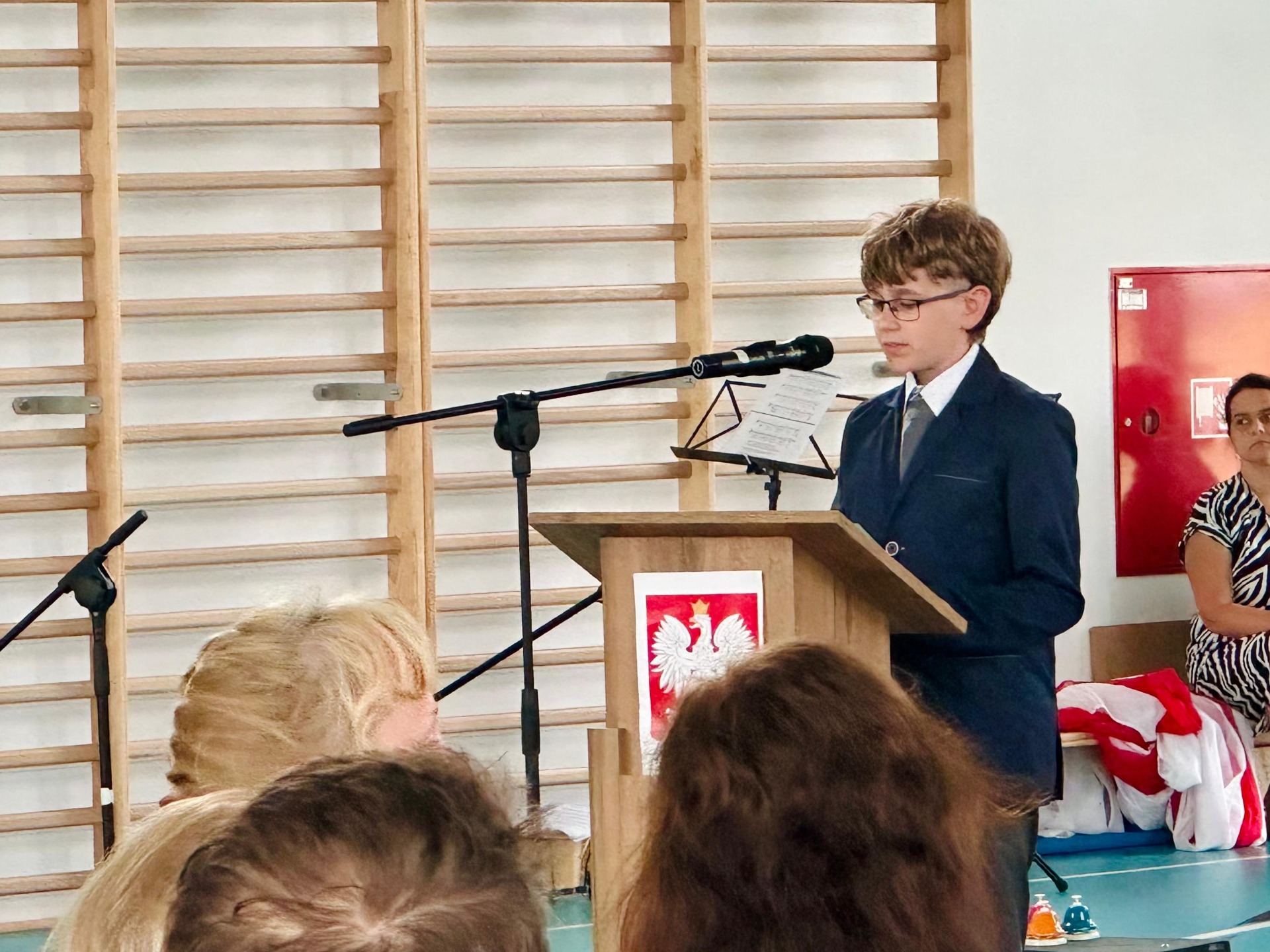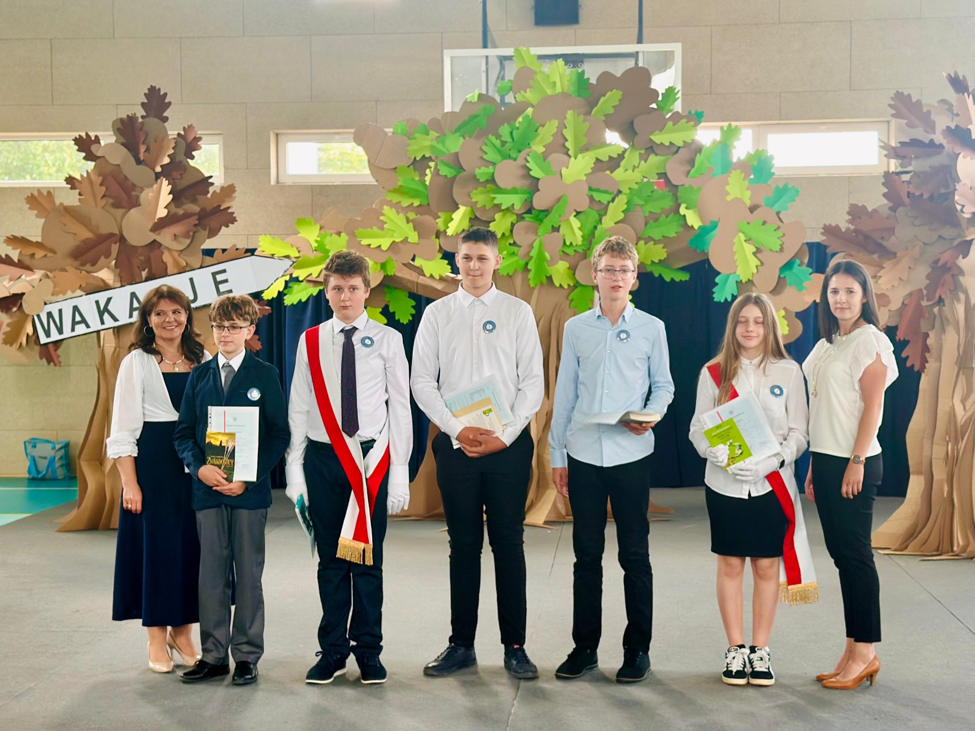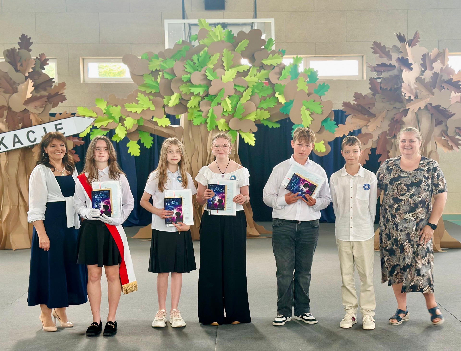 W piątek, podczas uroczystości zakończenia roku szkolnego, uczniowie klas 1–7 zgromadzili się w sali gimnastycznej, aby wspólnie podsumować miniony rok nauki. W obecności nauczycieli, rodziców i zaproszonych gości, pani dyrektor wręczyła nagrody książkowe uczniom, którzy osiągnęli najwyższe wyniki w nauce i otrzymali świadectwa z czerwonym paskiem. Rodzice tych uczniów otrzymali listy gratulacyjne jako wyraz uznania za wspieranie dzieci w ich edukacyjnych sukcesach.