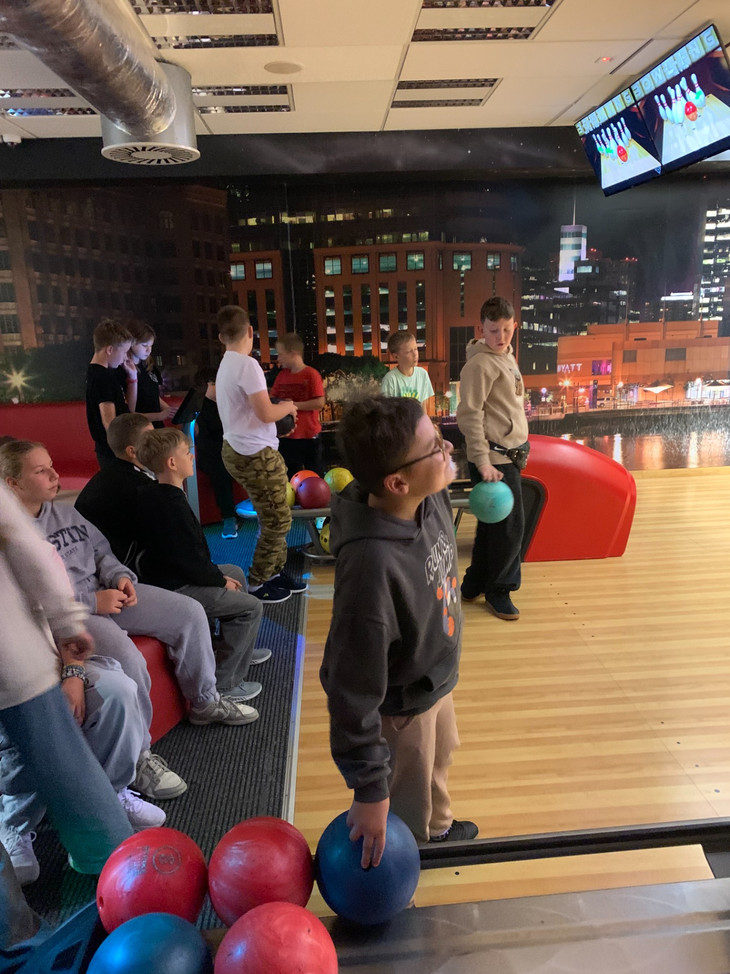 Z okazji Dnia Chłopca klasa 5a postanowiła sprawdzić, kto potrafi najlepiej rzucać… nie ołówkiem na lekcji, ale kulą bowlingową!