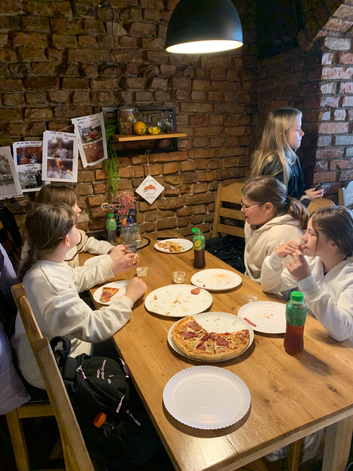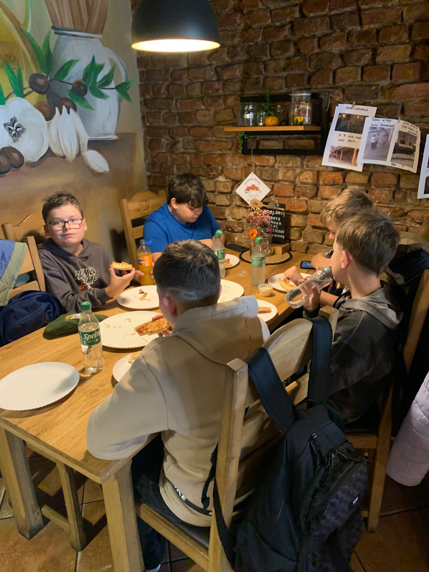Po sportowych zmaganiach wszyscy przenieśli się do pizzerii „Zamkowa”, gdzie każdy mógł zregenerować siły pyszną pizzą.