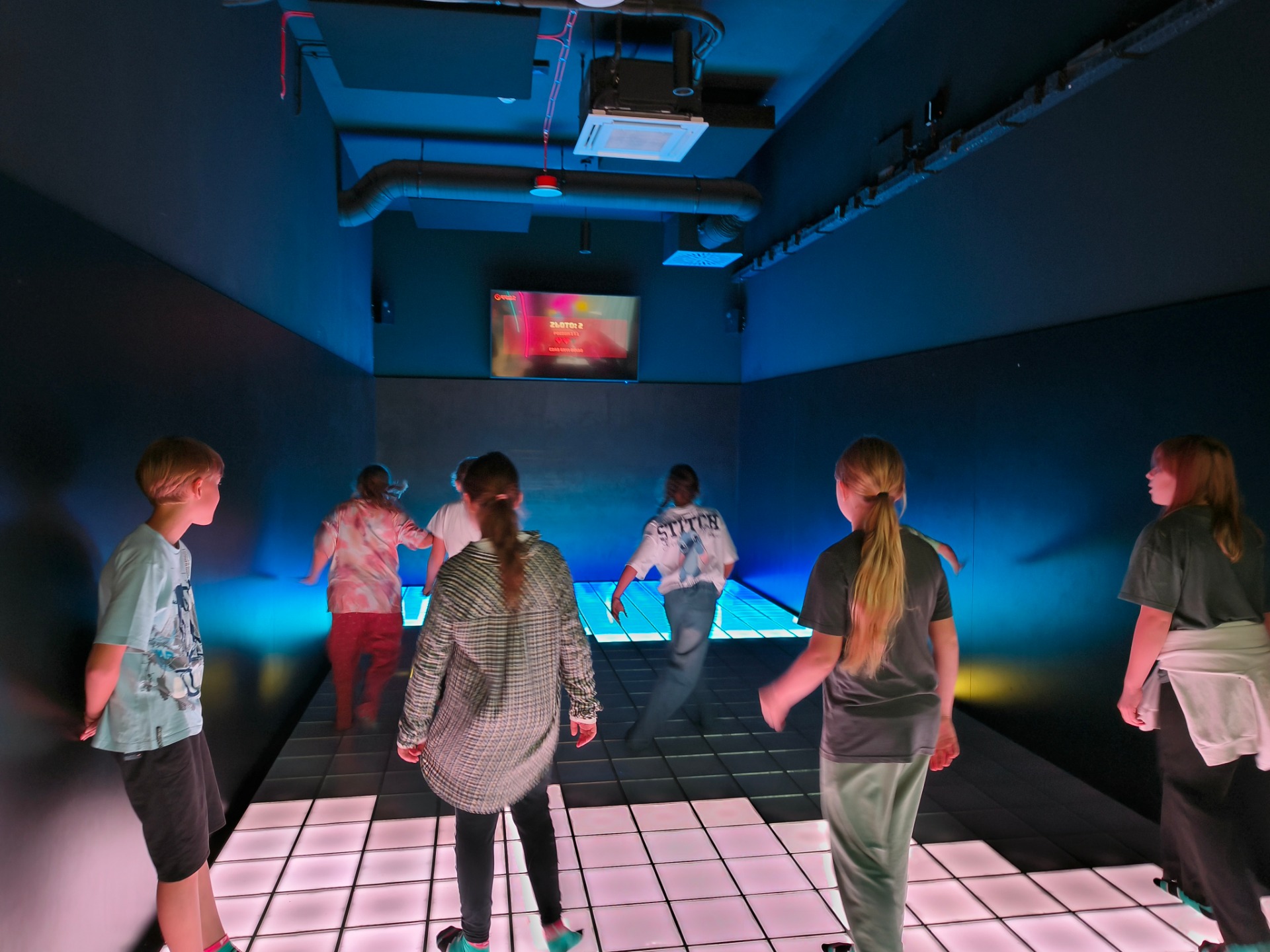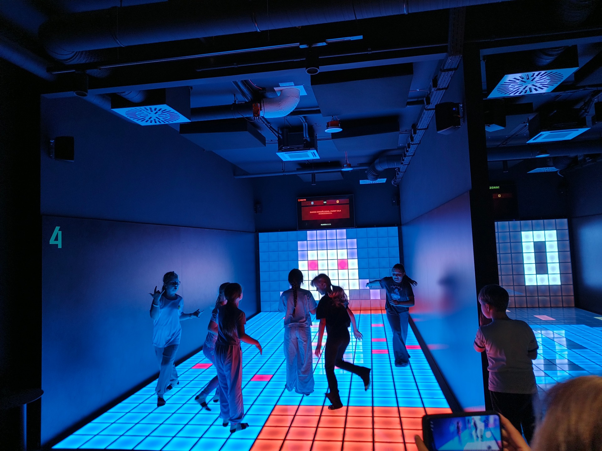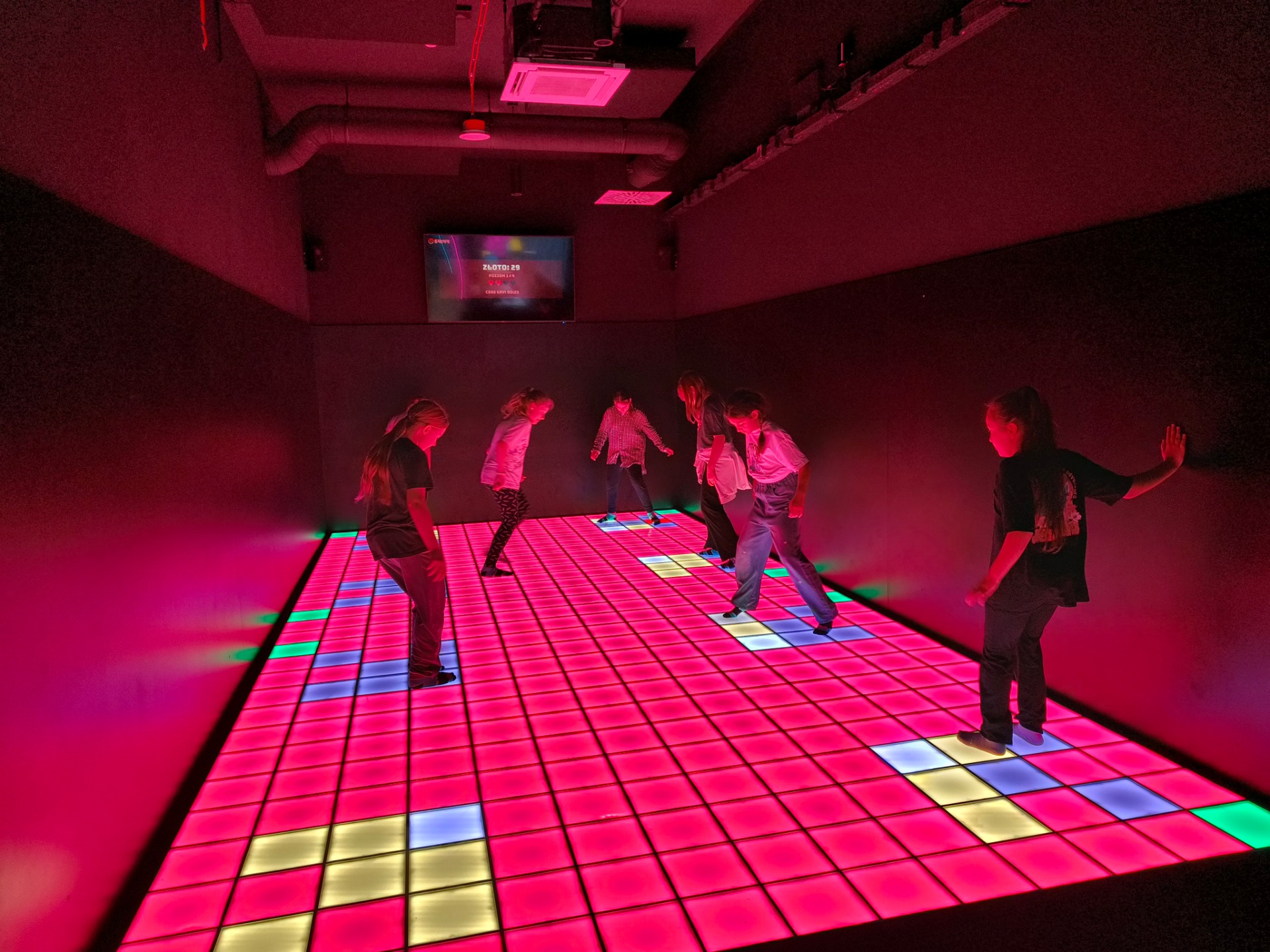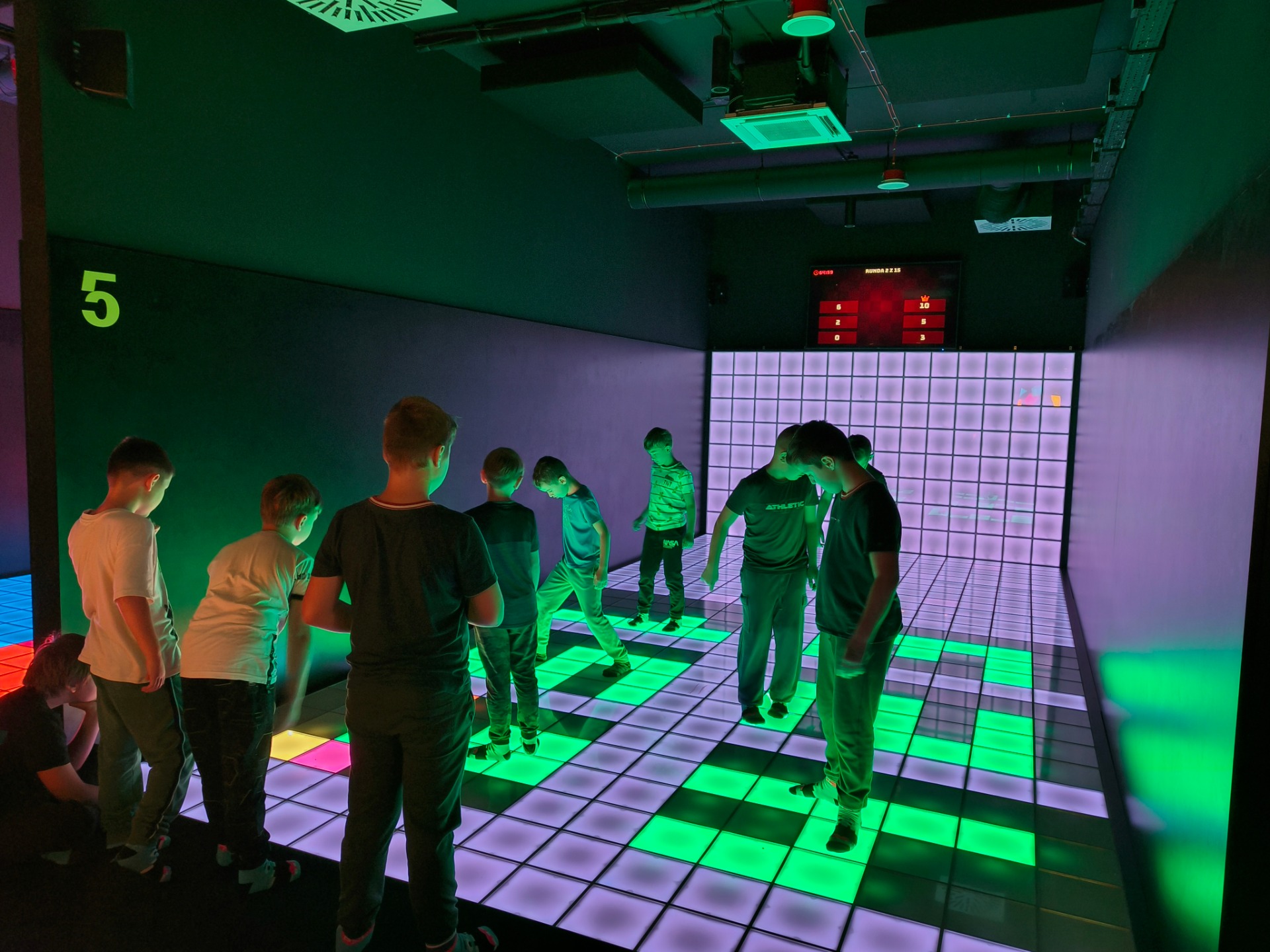 Pierwszym punktem programu były wygibasy w interaktywnej sali zabaw PixelXL. Trudno opisać to doświadczenie - człowiek ma wrażenie, że przeniósł się do gry komputerowej. Skakanie po kolorowych polach wymaga dobrego refleksu i sprawności fizycznej.