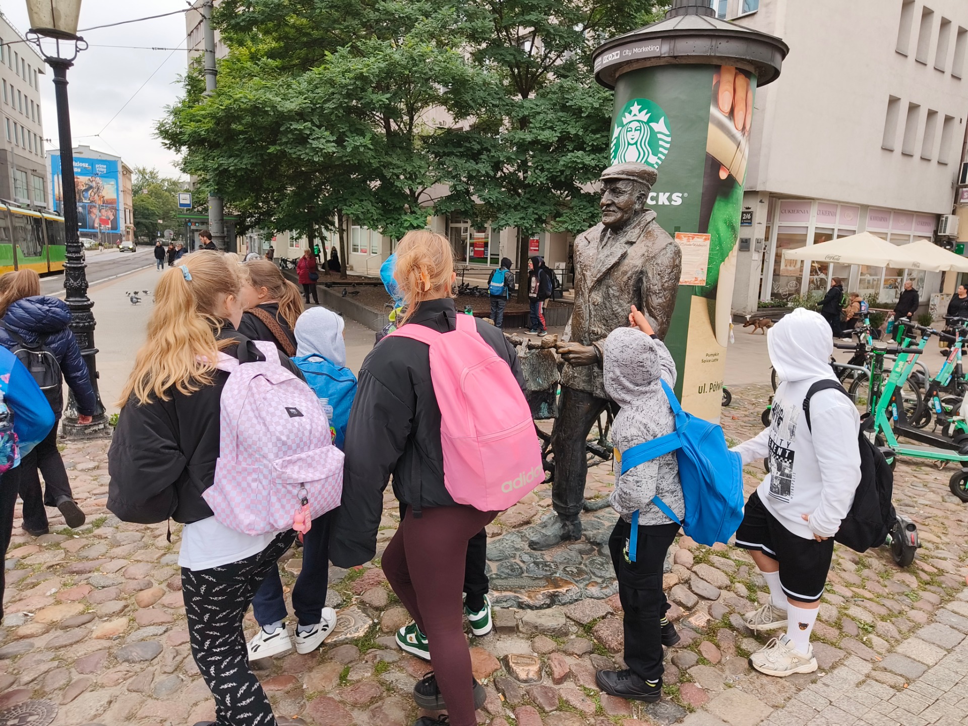 Wiadomo, że dzieciaki po dobrej zabawie są okropnie głodne, dlatego w przerwie postanowiliśmy zjeść obiad. Następnie ruszyliśmy w stronę Muzeum Narodowego w Poznaniu. Po drodze przybiliśmy piątkę Staremu Marychowi, zrobiliśmy sobie wspólne zdjęcie pod pręgierzem na Starym Rynku i podziwialiśmy dawną siedzibę Przemysła II.