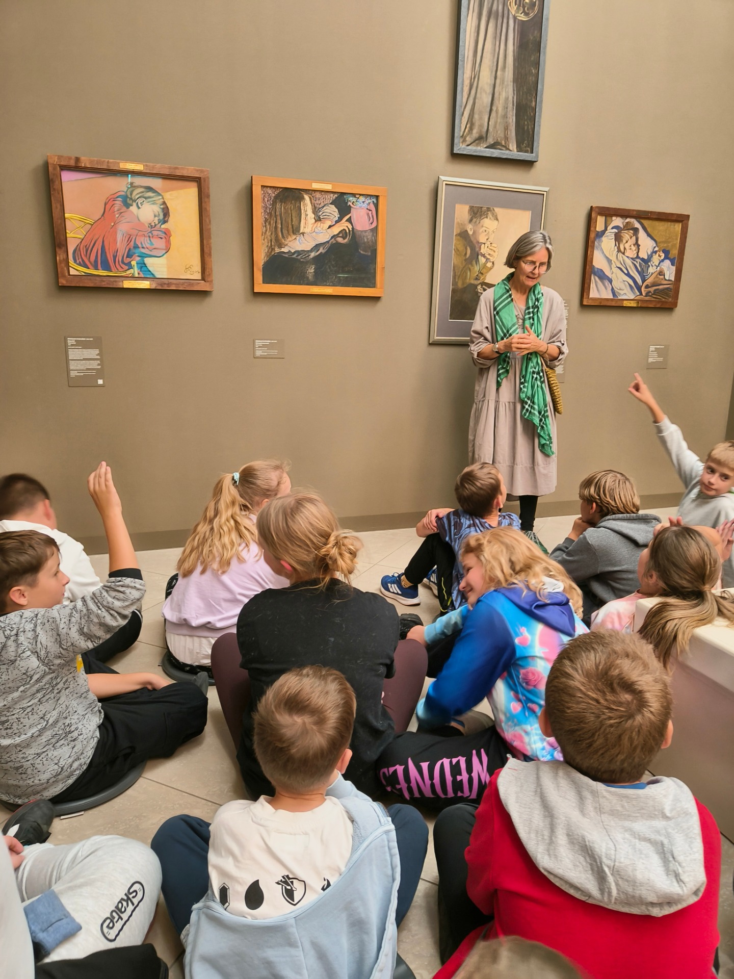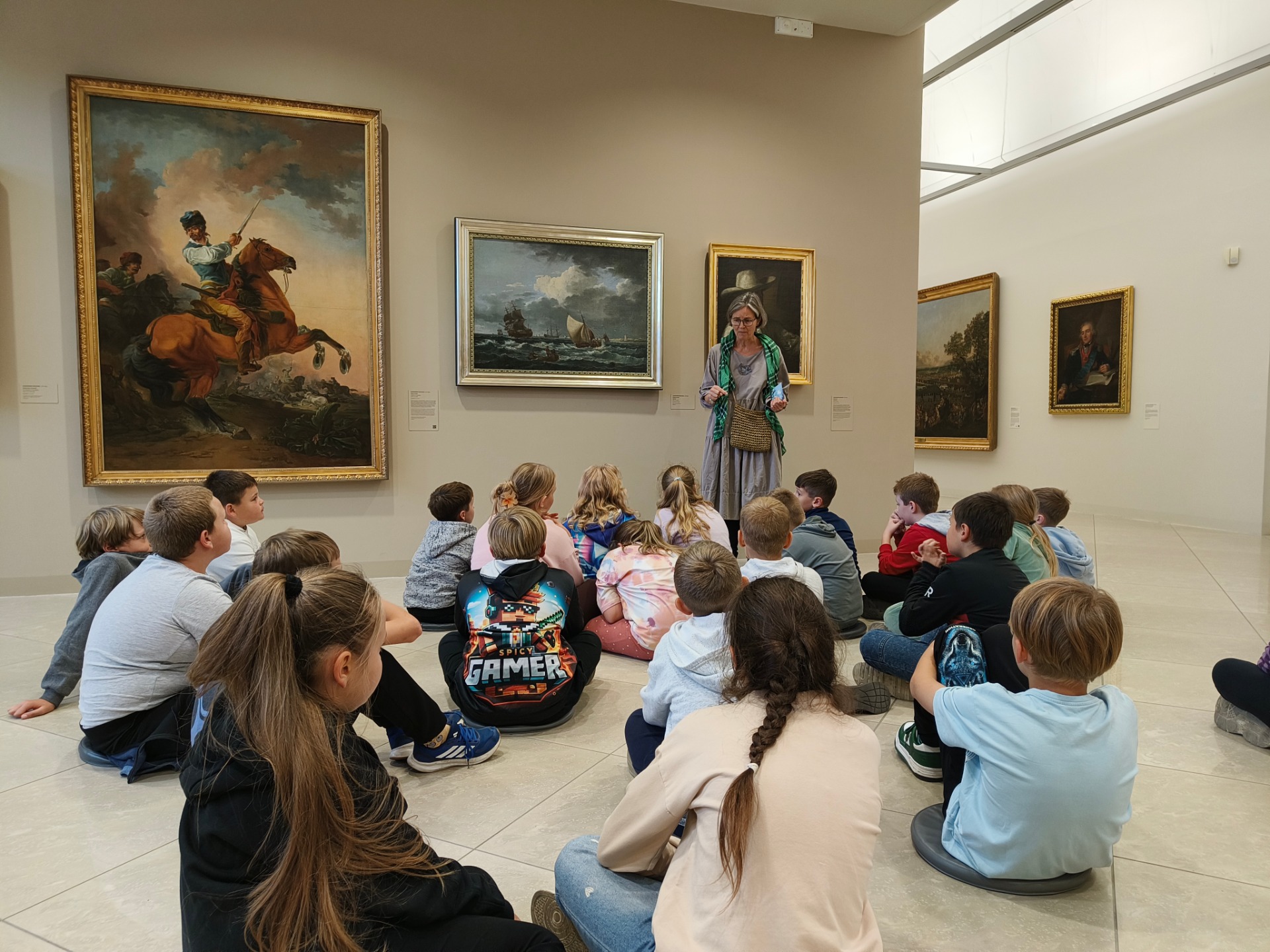 W Galerii Malarstwa i Rzeźby wzięliśmy udział w lekcjach muzealnych. Klasa III przyglądała się zwierzakom, stworkom i potworom ukrytym na obrazach, a IV poznała najważniejsze tematy malarskie. Podczas warsztatów młodsi lepili, a starsi rysowali.