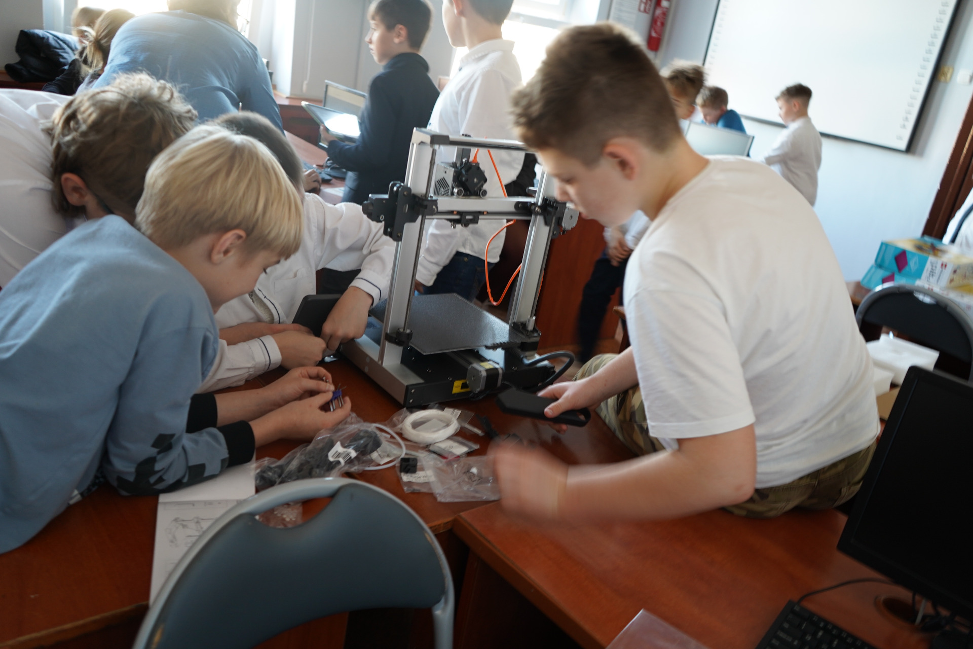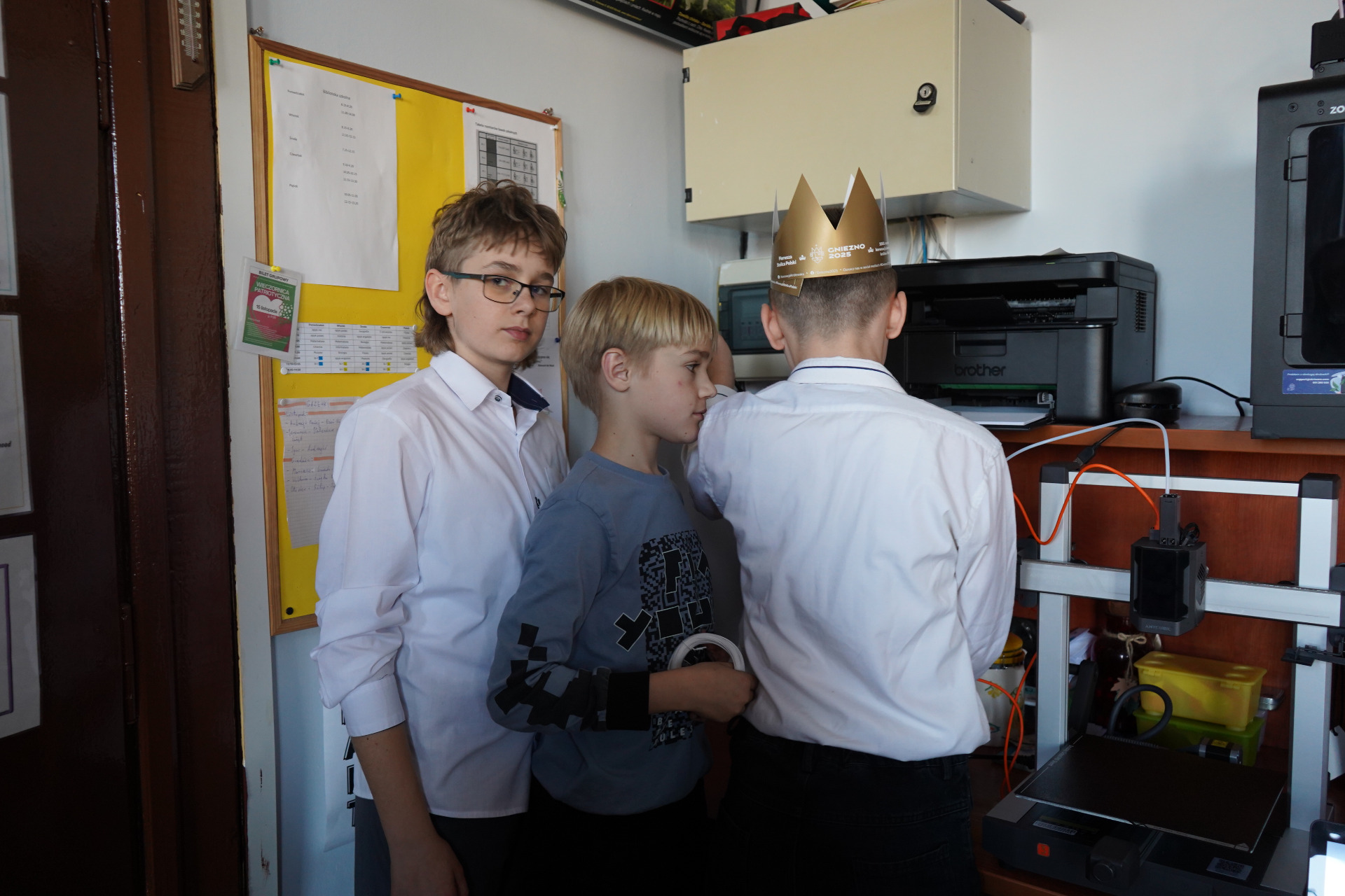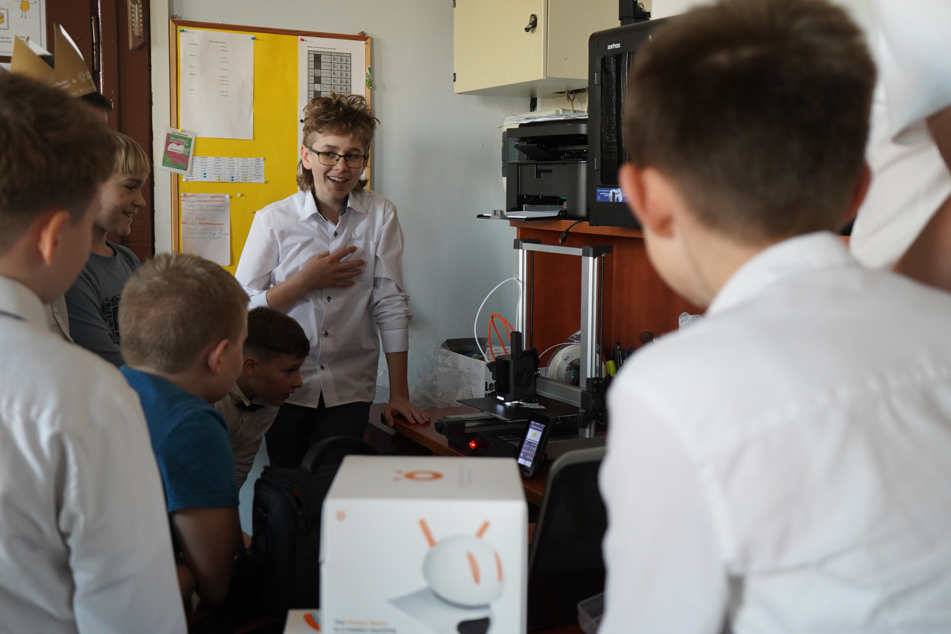 Podczas zajęć uczniowie z klas 6–8 samodzielnie złożyli drukarkę 3D Anycubic Cobra 3, a następnie dokonali pierwszego próbnego wydruku, poznając zasady działania drukarek addytywnych oraz podstawy projektowania trójwymiarowego.
