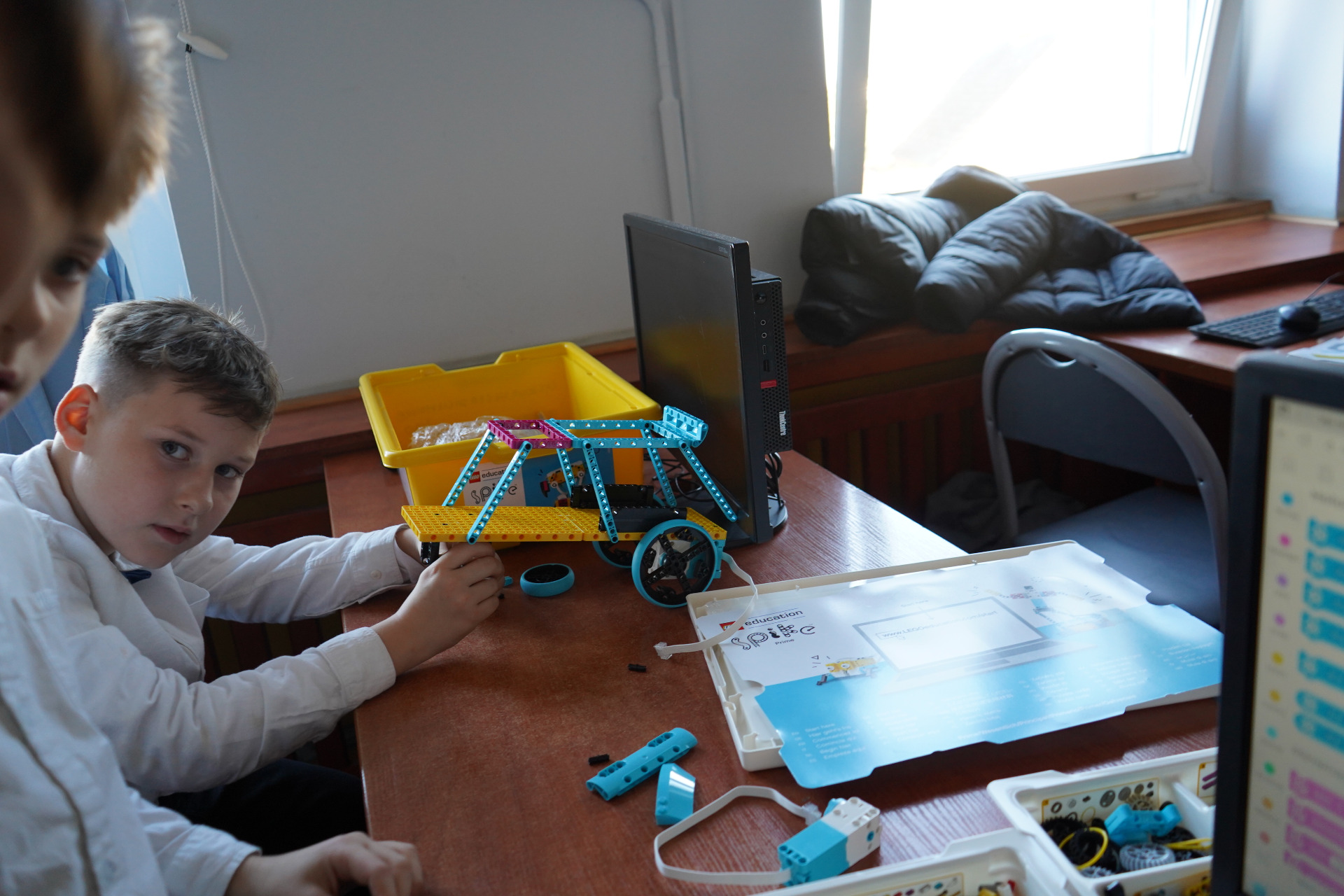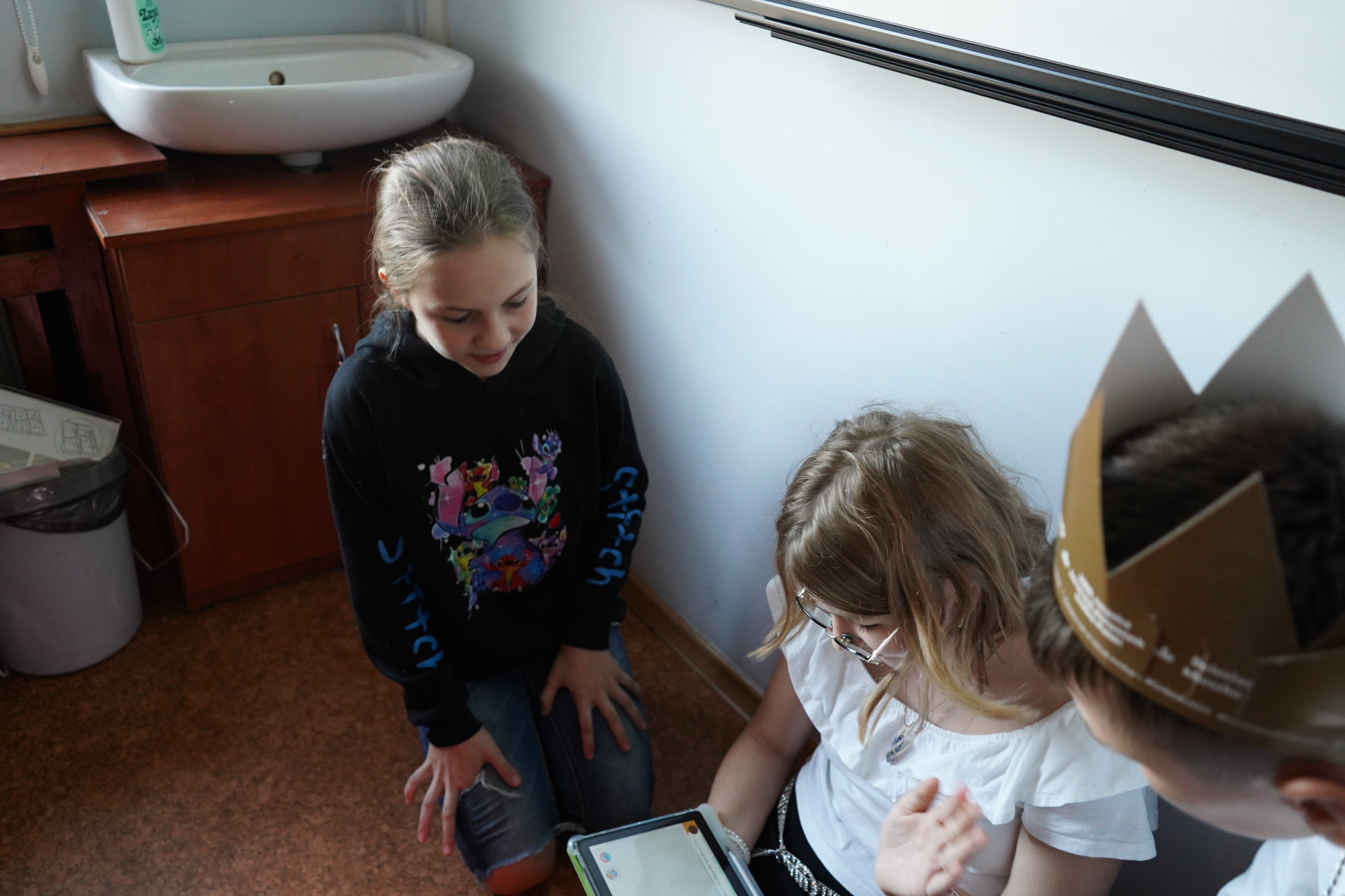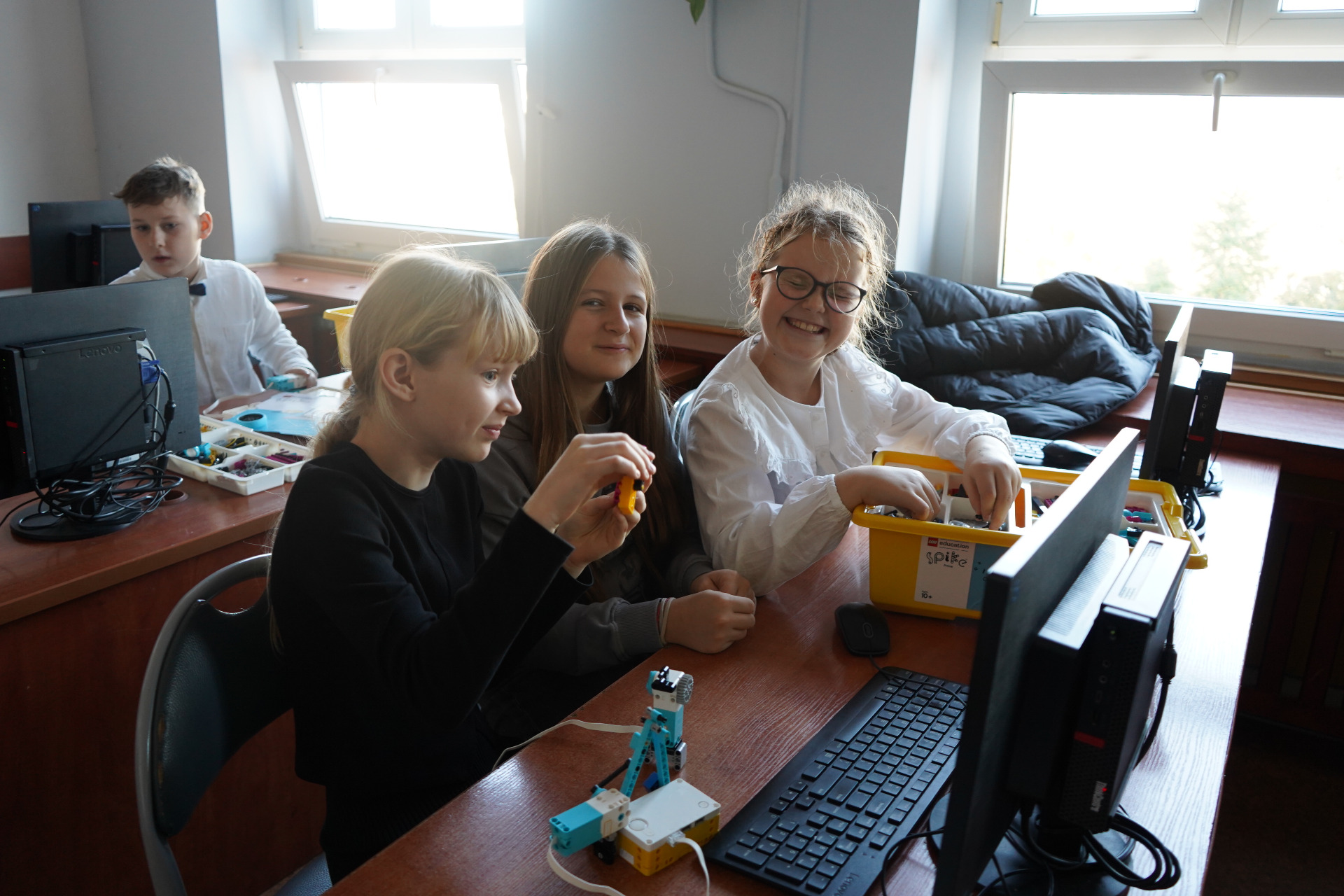 Młodsi uczniowie z klas 1–5 uczestniczyli w zajęciach wprowadzających do pracy z aplikacjami obsługującymi roboty Dash i Photon oraz zestawy Lego Spike. Dzieci mogły samodzielnie programować ruch i zachowanie robotów, rozwijając umiejętność logicznego myślenia oraz kreatywnego rozwiązywania problemów.