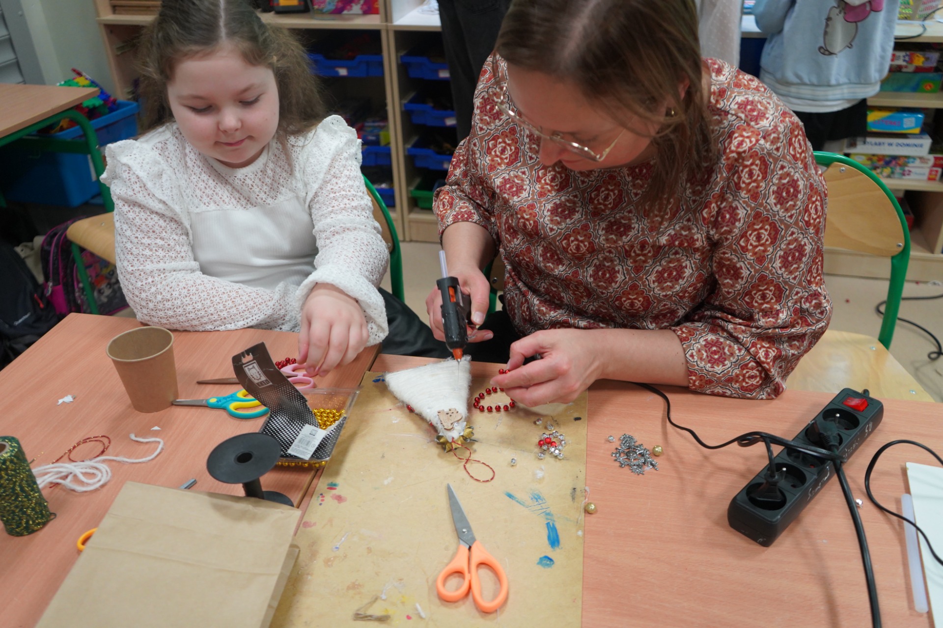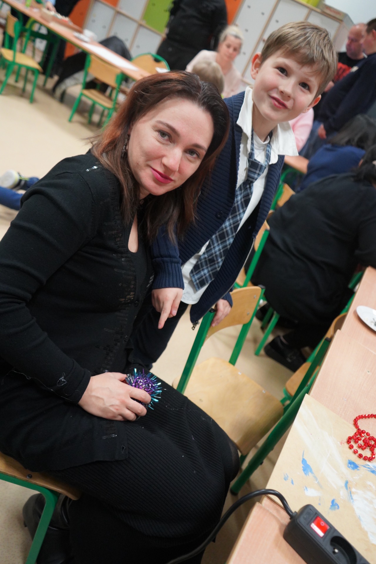 Po części oficjalnej dzieci wraz z rodzicami udały się do swojej klasy, gdzie czekała słodka niespodzianka i kawa dla rodziców. Każdy z uczniów wraz z rodzicami własnoręcznie wykonał ozdobę na klasową choinkę. To był dzień pełen wrażeń i radości.
